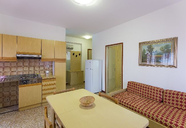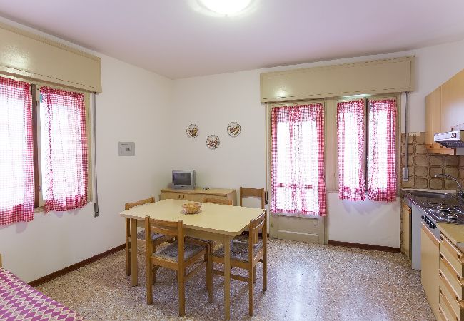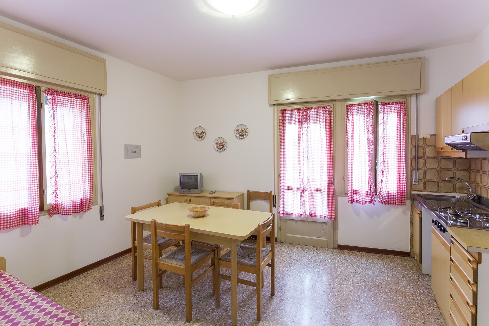 Appartamento bilocale (senza ascensore) con balcone, composto da camera con letto matrimoniale e letto a castello, soggiorno con angolo cottura, bagno. Il condominio STELLA D'ORO si affaccia sulla zona pedonale serale di Viale Santa Margherita, dista circa 70 metri dalla spiaggia e pochi passi dal centro storico di Caorle. Negozi, bar e ristoranti si trovano nelle immediate vicinanze.