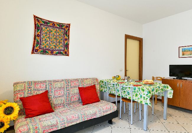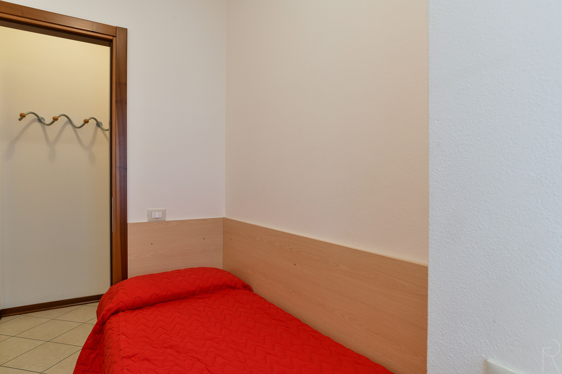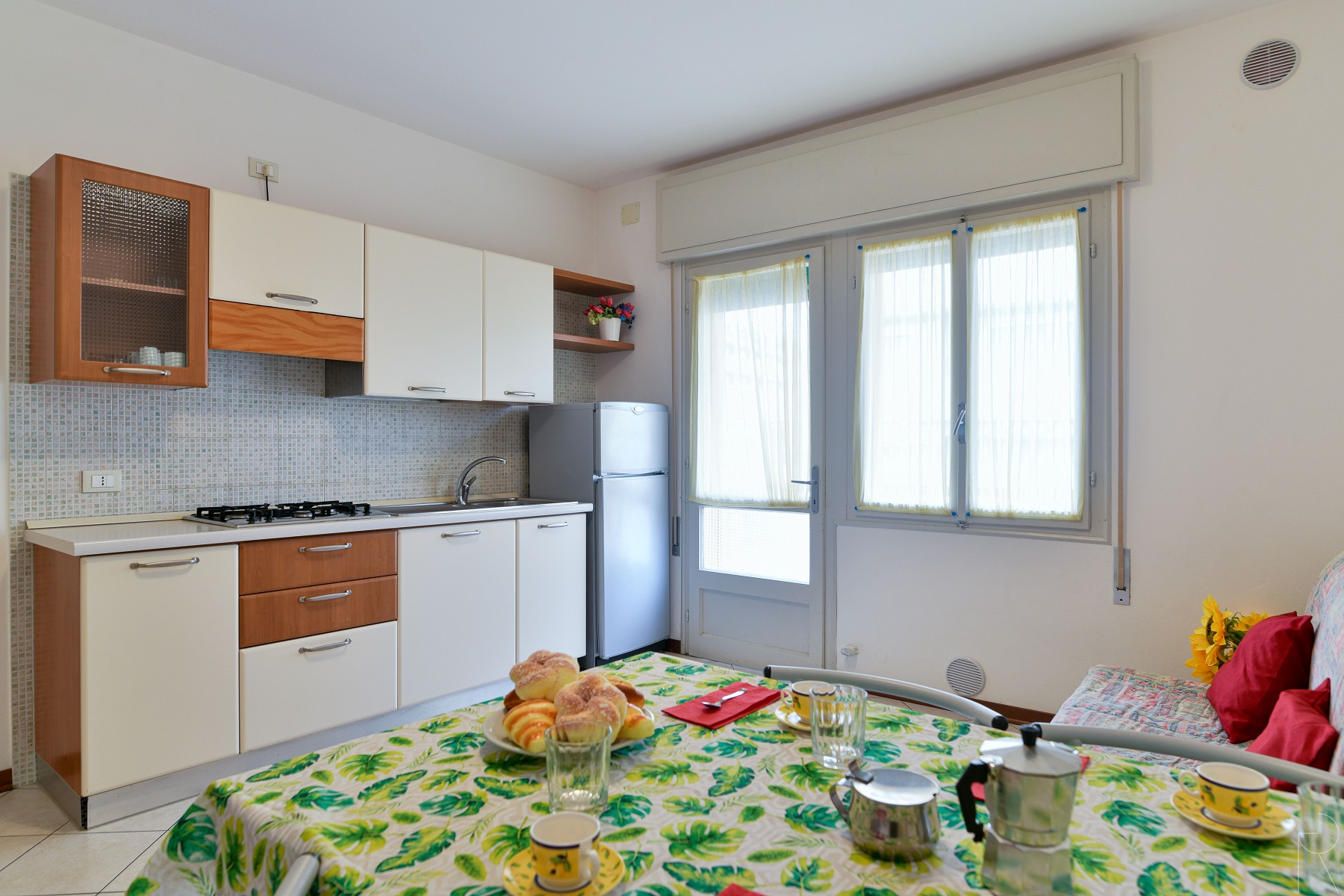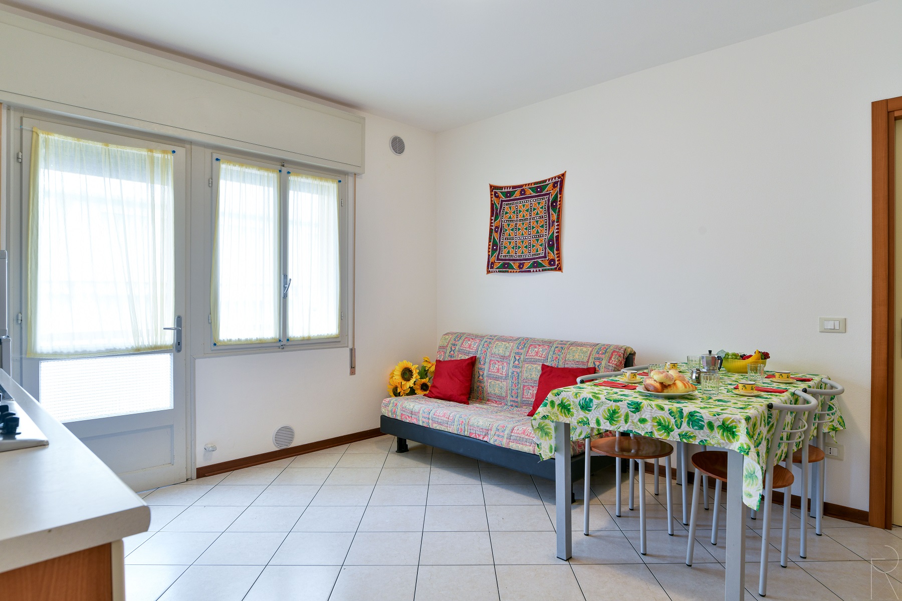 Trilocale (senza ascensore) con terrazzino, composto da una camera con letto matrimoniale e letto singolo, una camera con letto singolo, soggiorno con divano letto doppio ed angolo cottura, bagno. Il condominio STELLA D'ORO si affaccia sulla zona pedonale serale di Viale Santa Margherita, dista circa 70 metri dalla spiaggia e pochi passi dal centro storico di Caorle. Negozi, bar e ristoranti si trovano nelle immediate vicinanze.