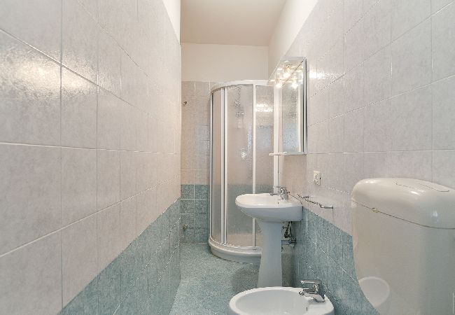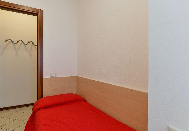 L’appartamento trilocale, situato al piano terra, può ospitare fino a 6 persone e offre spazi accoglienti e luminosi. Si compone di un soggiorno con angolo cottura attrezzato e divano letto matrimoniale, giardino privato ideale per pranzi o momenti di relax all’aperto, bagno con doccia, camera matrimoniale con terzo letto e cameretta con letto singolo.