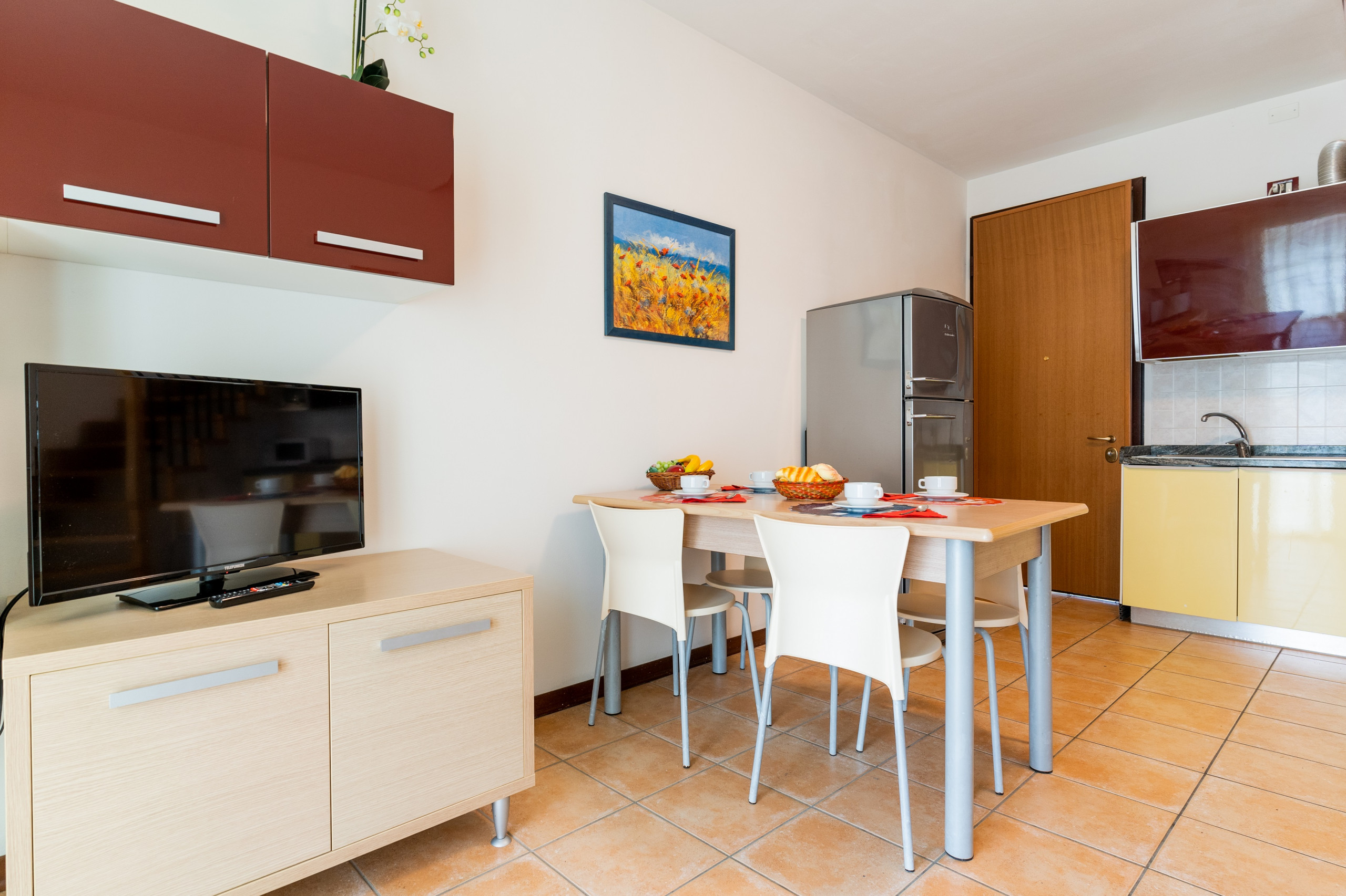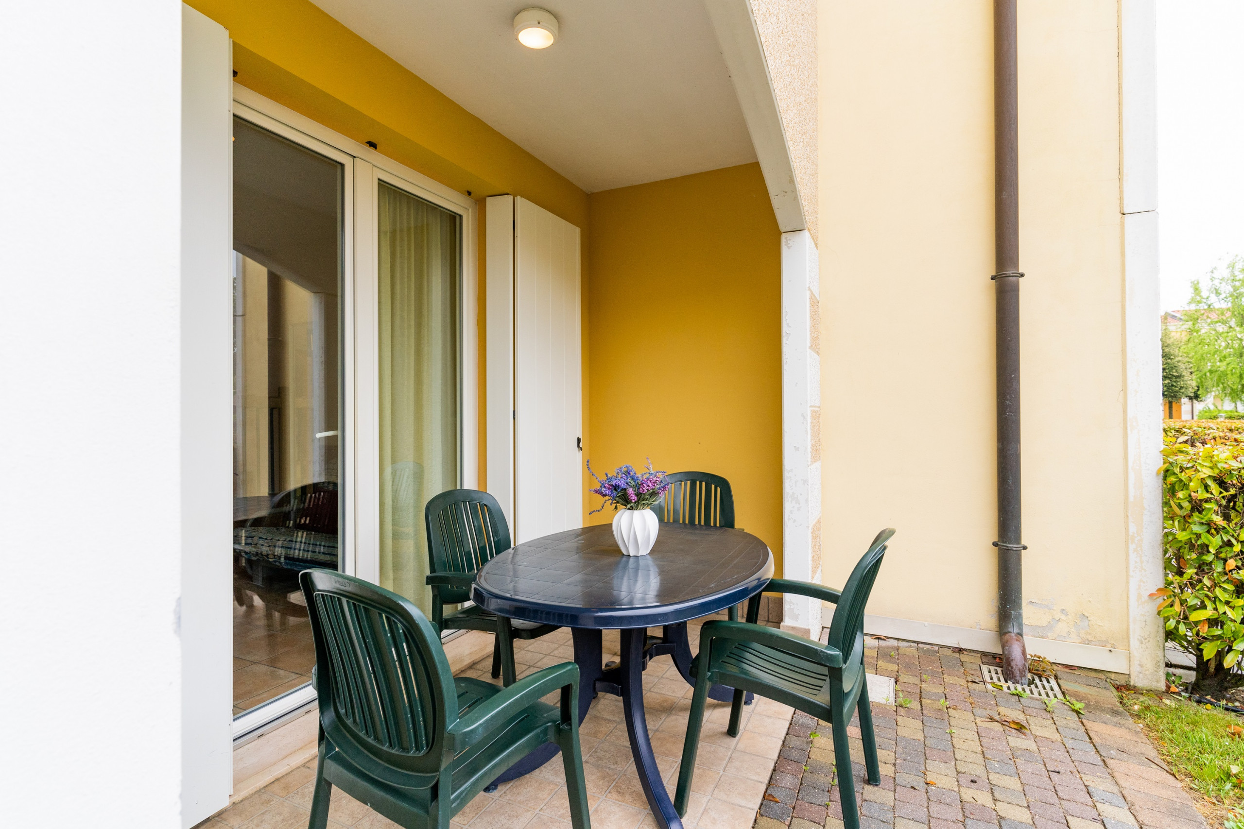 Le villette godono di esposizioni diverse: verso la piscina oppure verso il vialetto interno. Alcune unità dispongono di giardino e portico arredato, altre di solo portico, sempre attrezzato con tavolo e sedie esterne, ideale per pranzi e cene all’aperto.