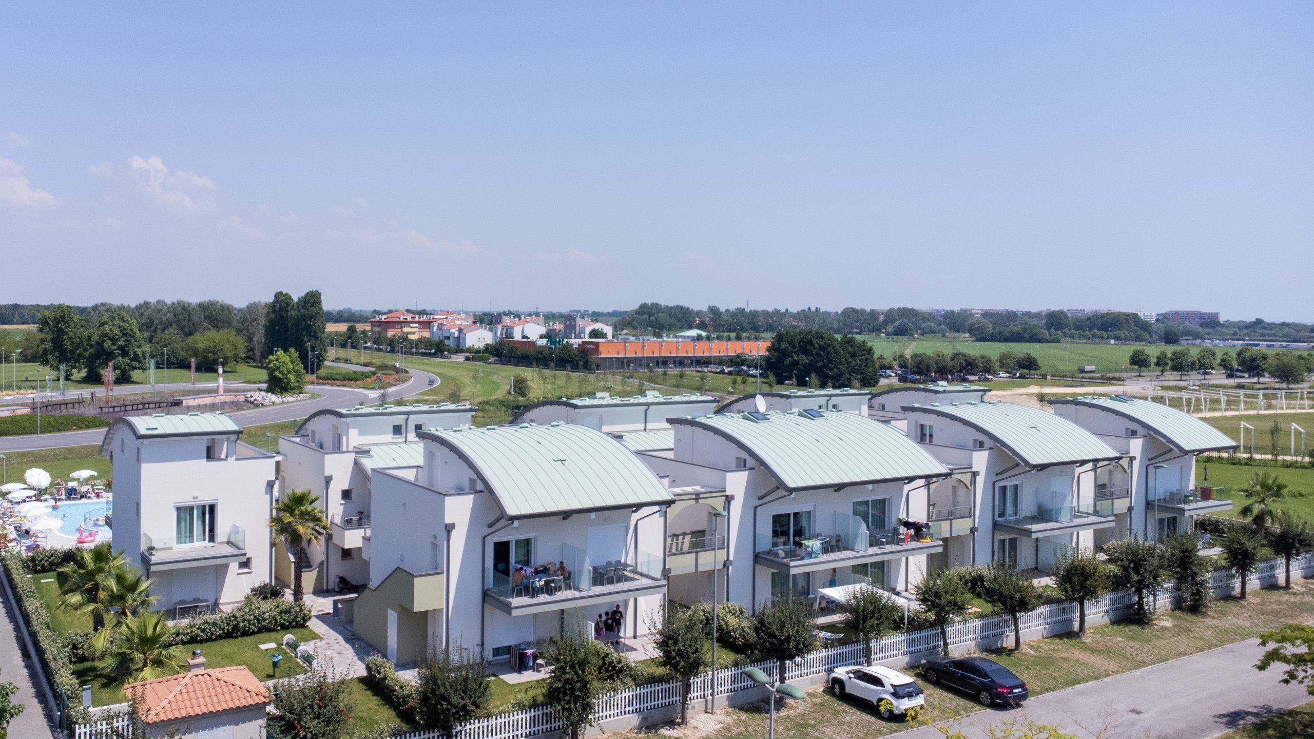 Il villaggio offre ampi giardini comuni con vialetti pedonali, piscina per adulti e piscina dedicata ai bambini, area giochi e zona barbecue. Sono presenti parcheggi scoperti e autorimessa, mentre il Wi-Fi è disponibile gratuitamente nelle aree comuni.