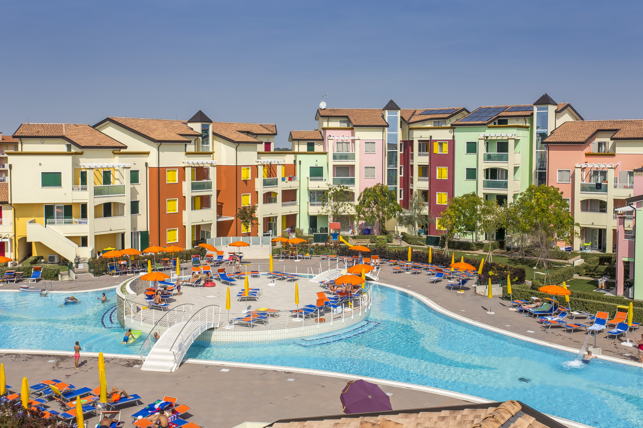 Il villaggio è composto da 93 appartamenti di varie tipologie, distribuiti su tre piani e serviti da ascensore dal piano seminterrato. Puoi scegliere tra bilocali e trilocali (anche duplex), tutti arredati con cura e completi di: climatizzatore, TV SAT, cassaforte, microonde, asciugacapelli, caffettiera elettrica e posto auto (in autorimessa o scoperto).