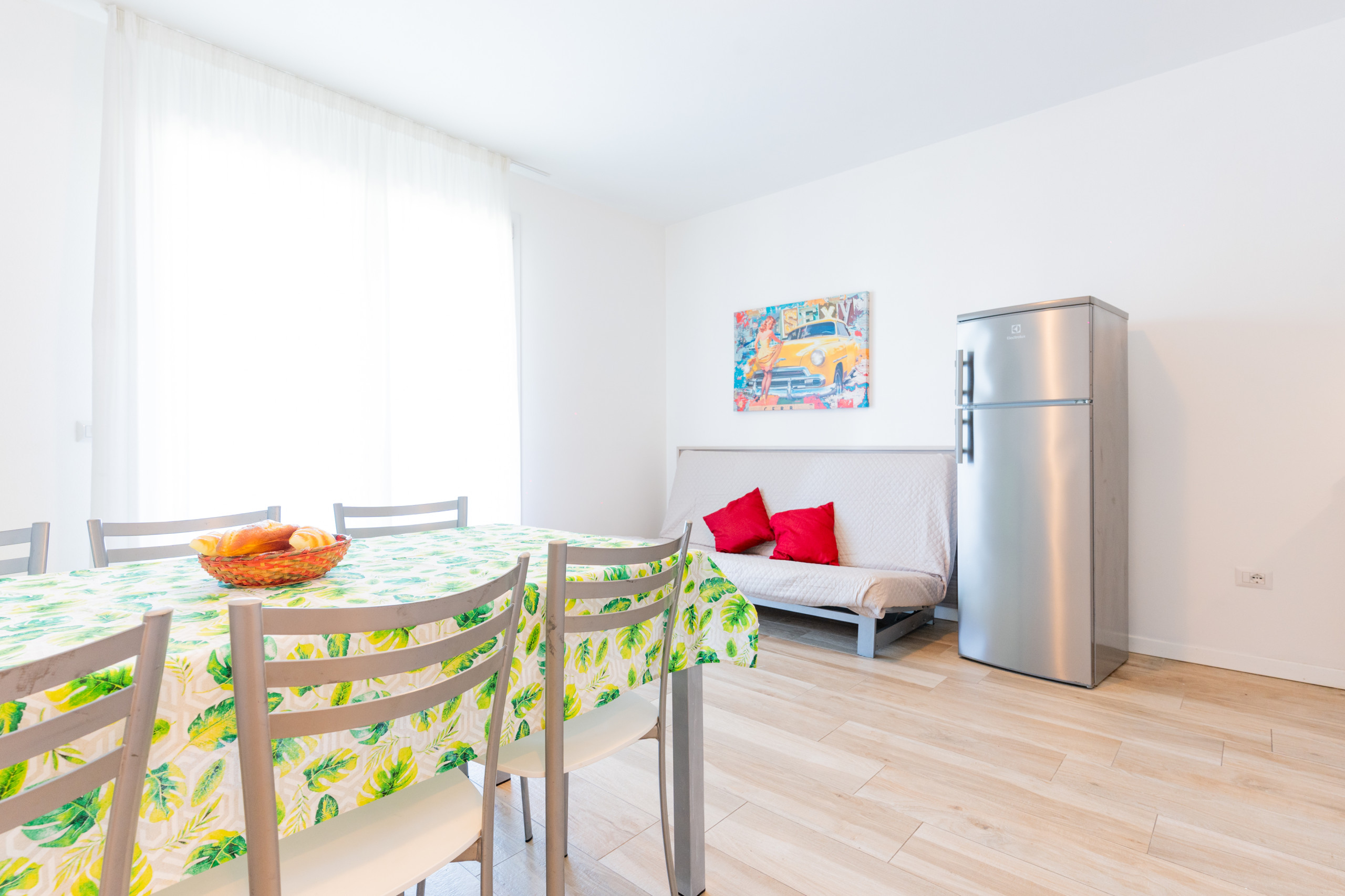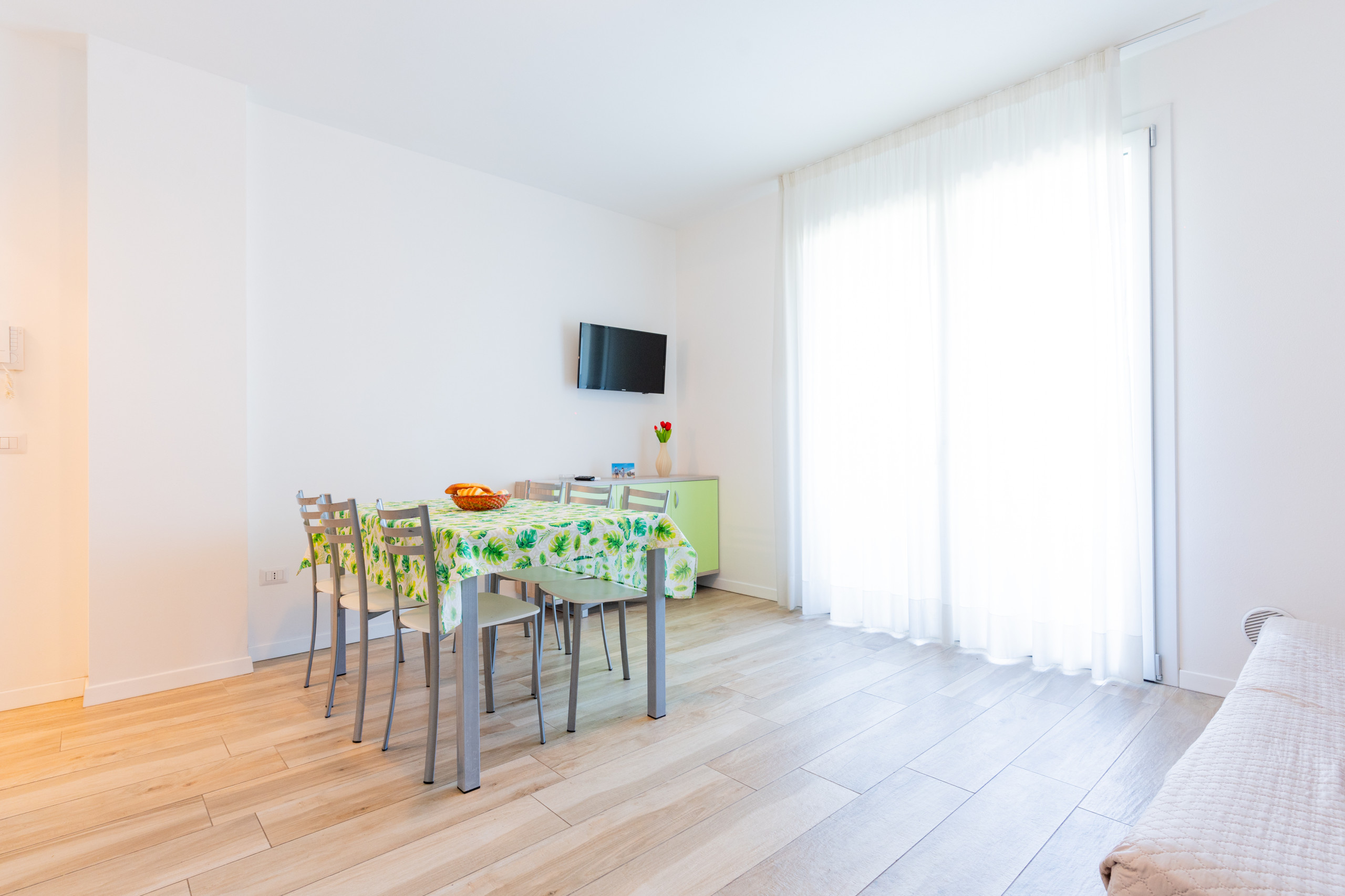 I nostri appartamenti bilocali di 55 m², situati al 1°, 2° o 3° piano, offrono spazi luminosi e funzionali, perfetti per una vacanza all’insegna del comfort. Ogni unità dispone di un balcone arredato, ideale per godersi pranzi e cene all’aperto durante le serate estive.