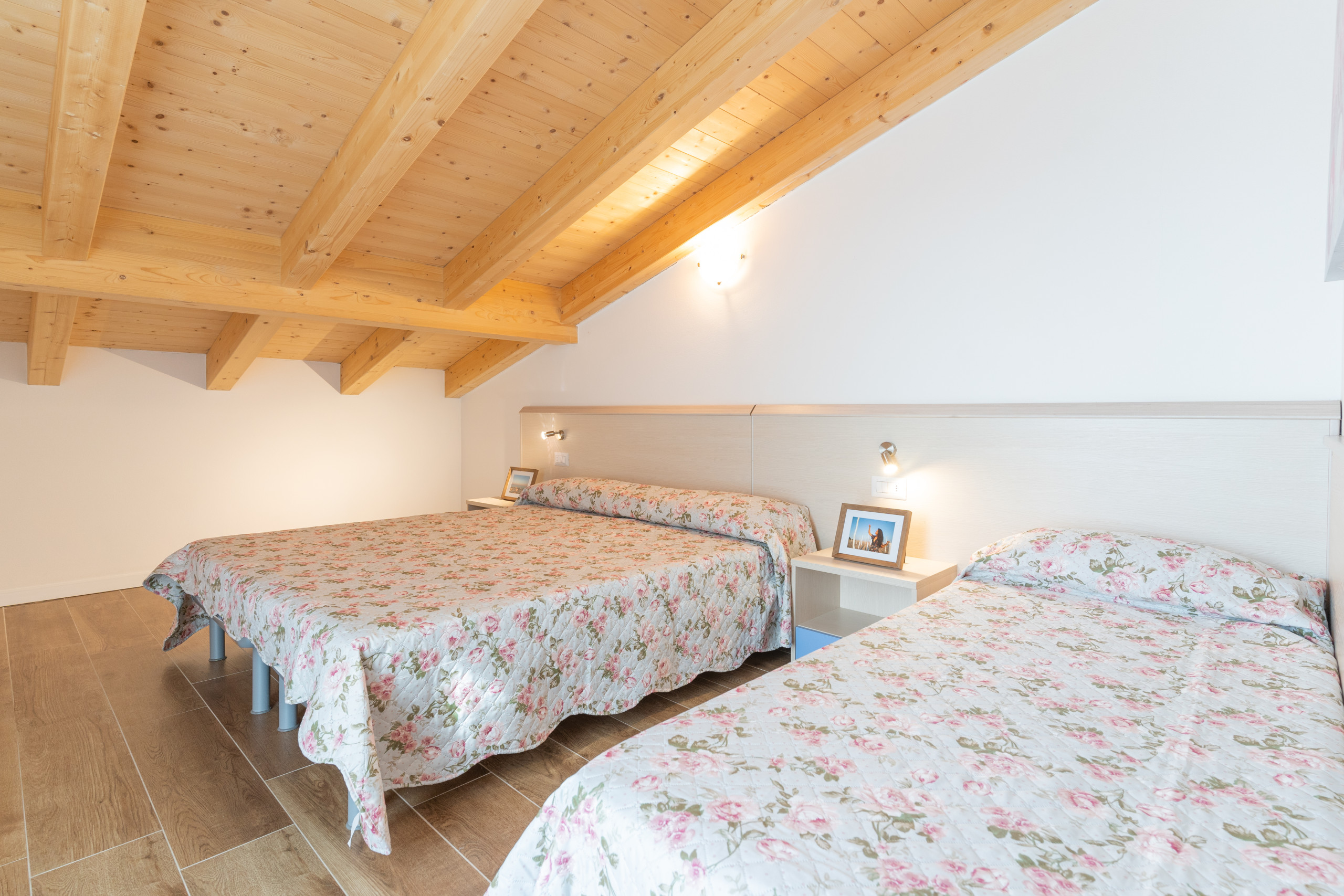 Attraverso una scala interna si accede al quarto piano, dove è presente una seconda camera da letto, configurabile con letto matrimoniale, letto matrimoniale più singolo oppure due letti singoli separati, oltre a un ampio bagno con doccia.