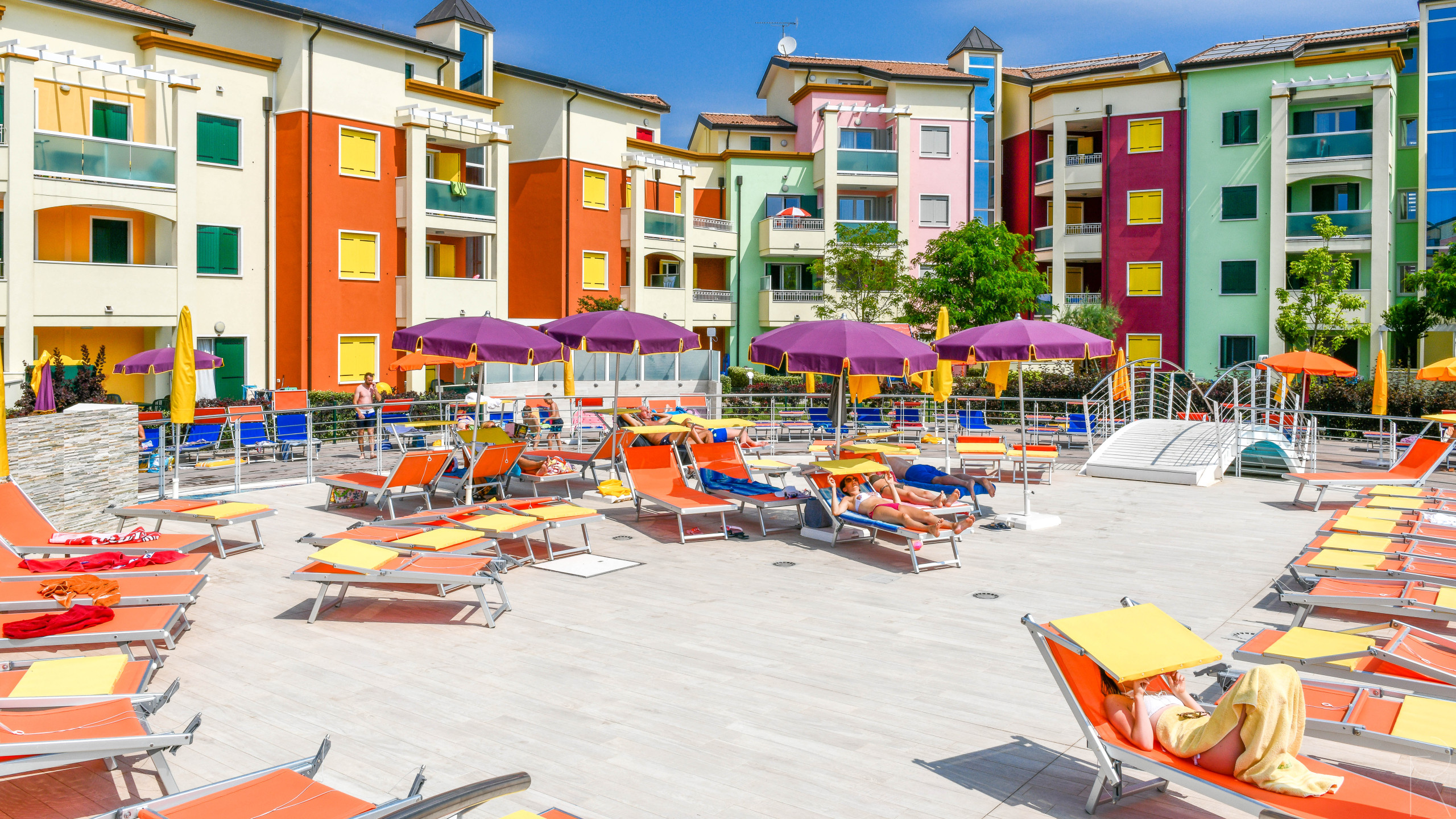 Il villaggio è composto da 93 appartamenti di varie tipologie, distribuiti su tre piani e serviti da ascensore dal piano seminterrato. Puoi scegliere tra bilocali e trilocali (anche duplex), tutti arredati con cura e completi di: climatizzatore, TV SAT, cassaforte, microonde, asciugacapelli, caffettiera elettrica e posto auto (in autorimessa o scoperto).