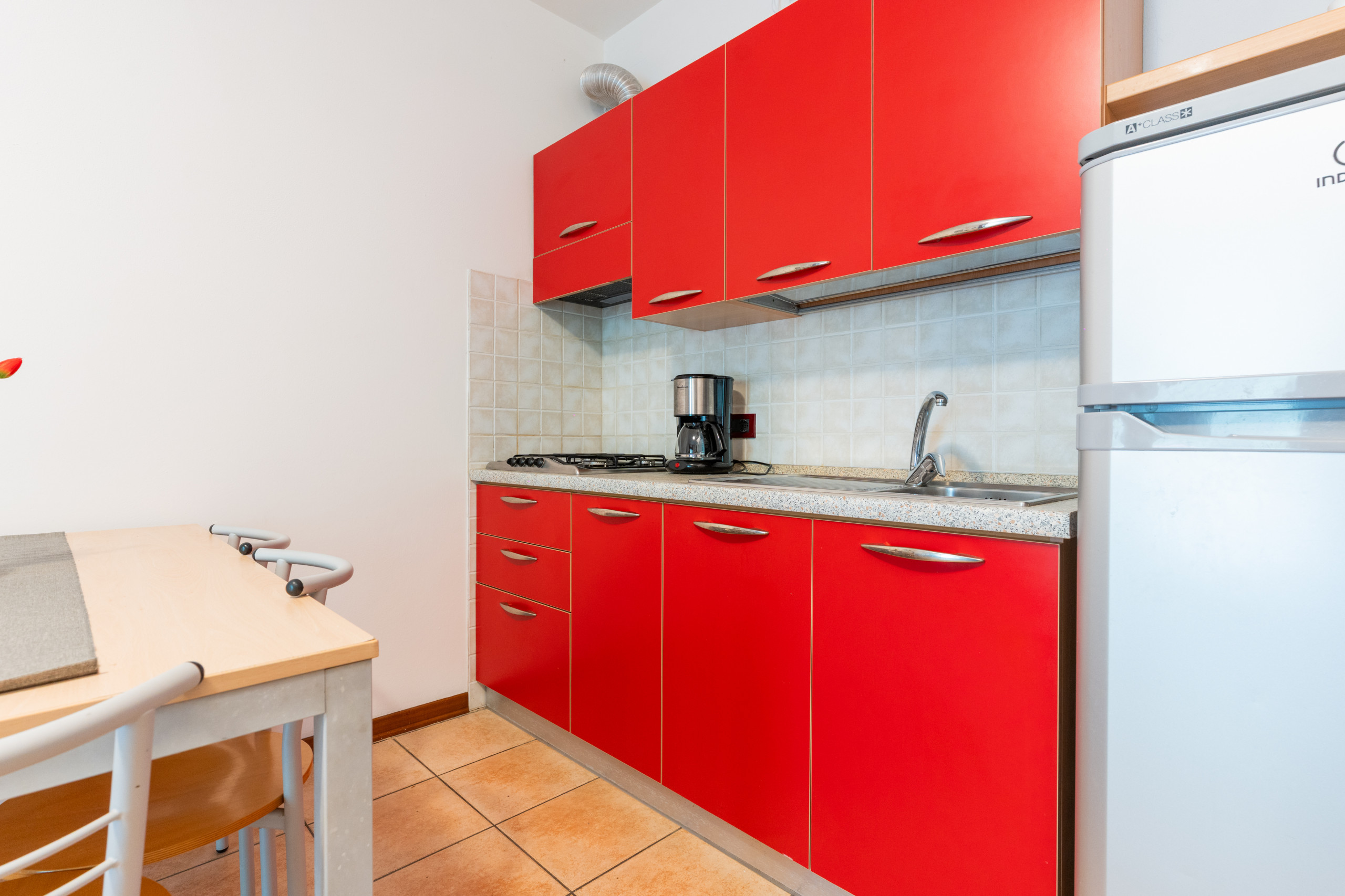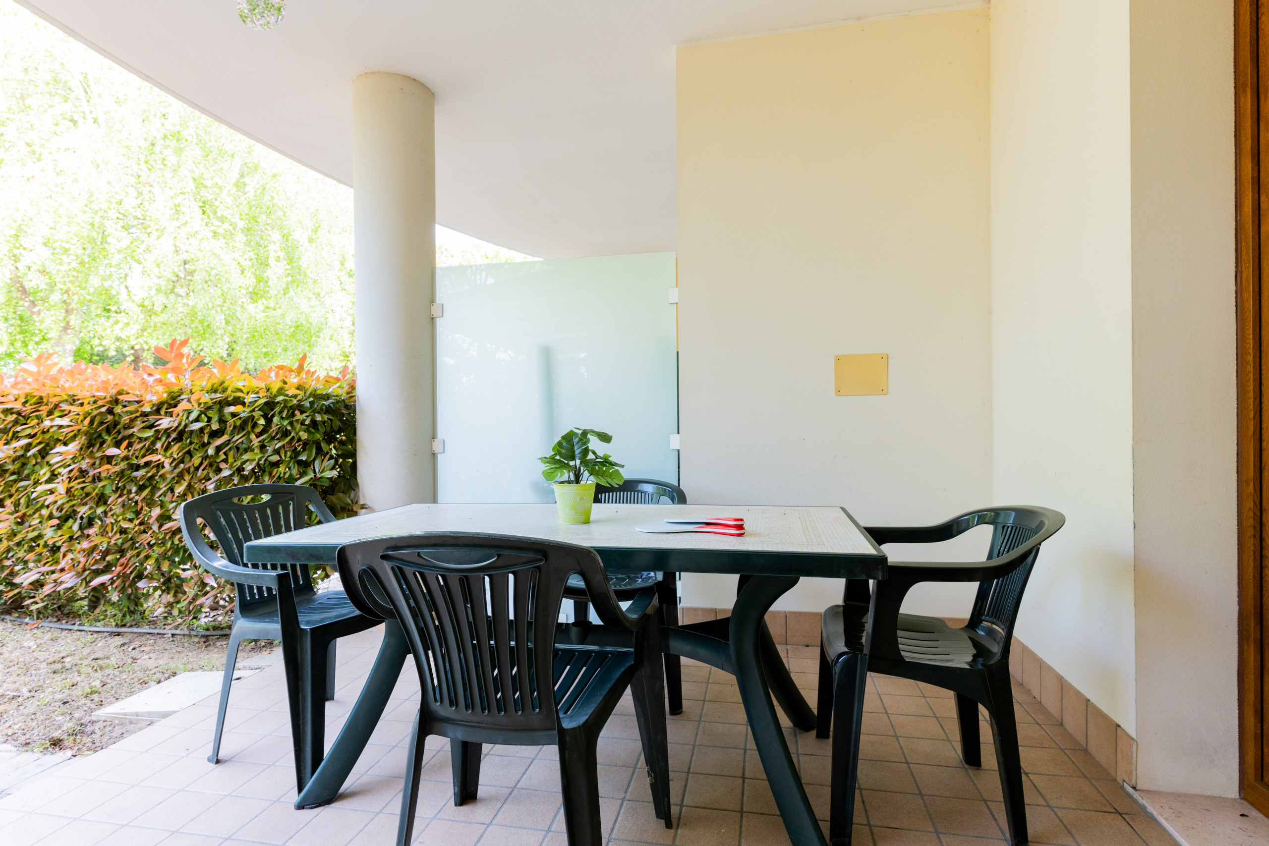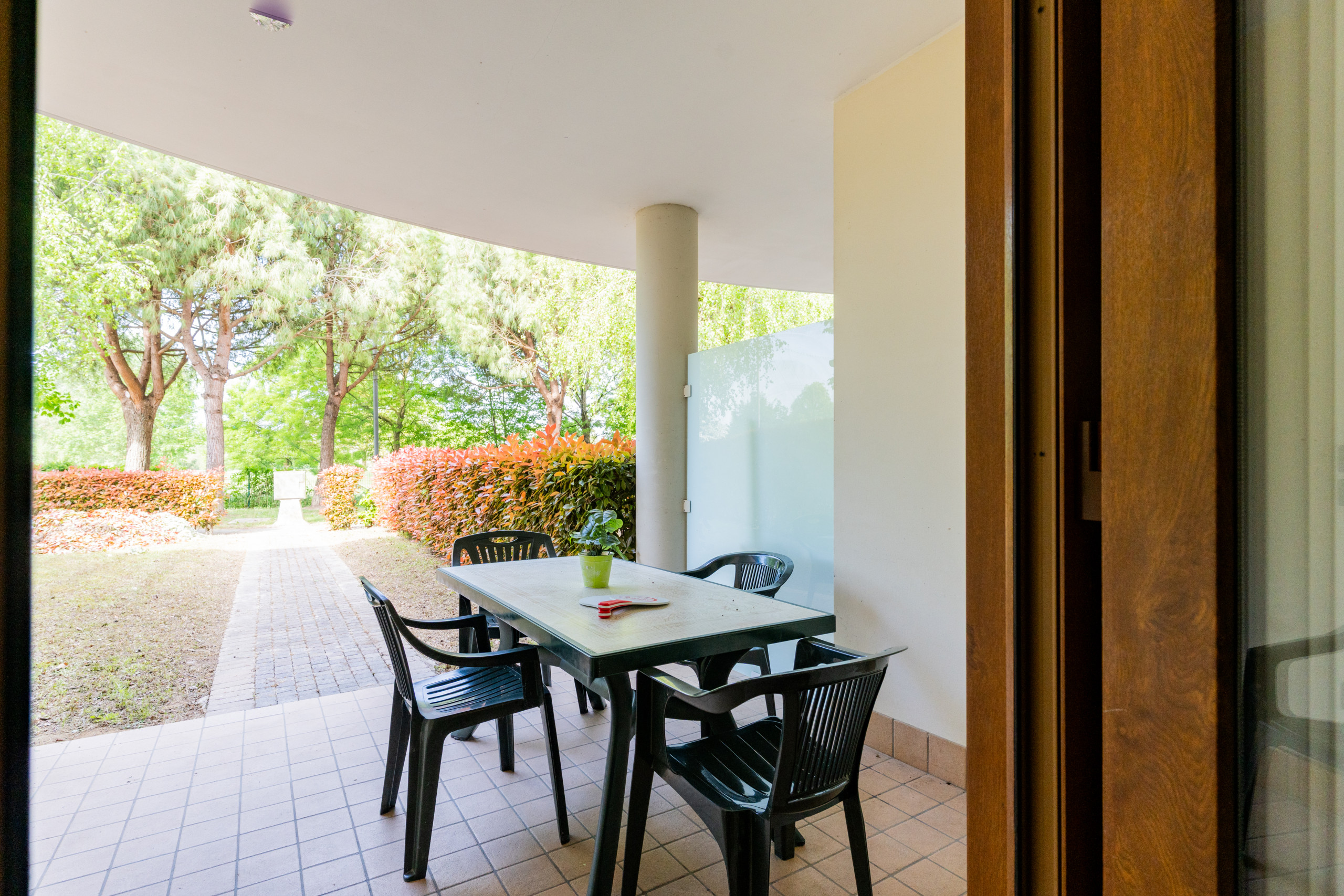 Le villette bilocali ai CARPINI (50 mq) sono accoglienti e funzionali, ideali per un soggiorno confortevole. Disposte su due piani, offrono un giardino e un portico arredato, perfetti per pranzi e cene all'aperto.
