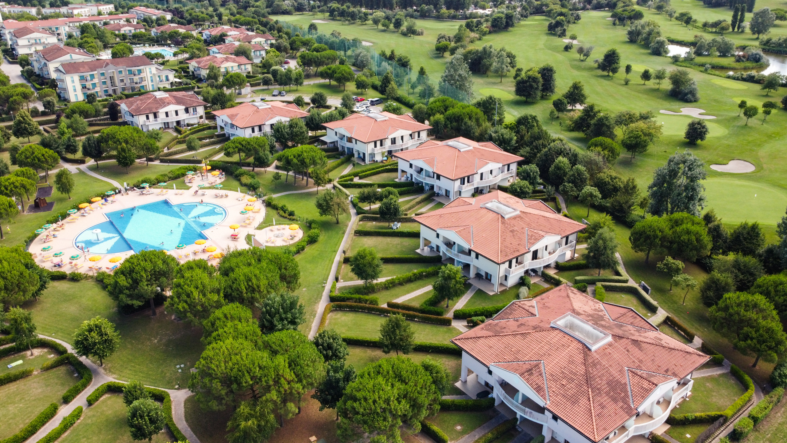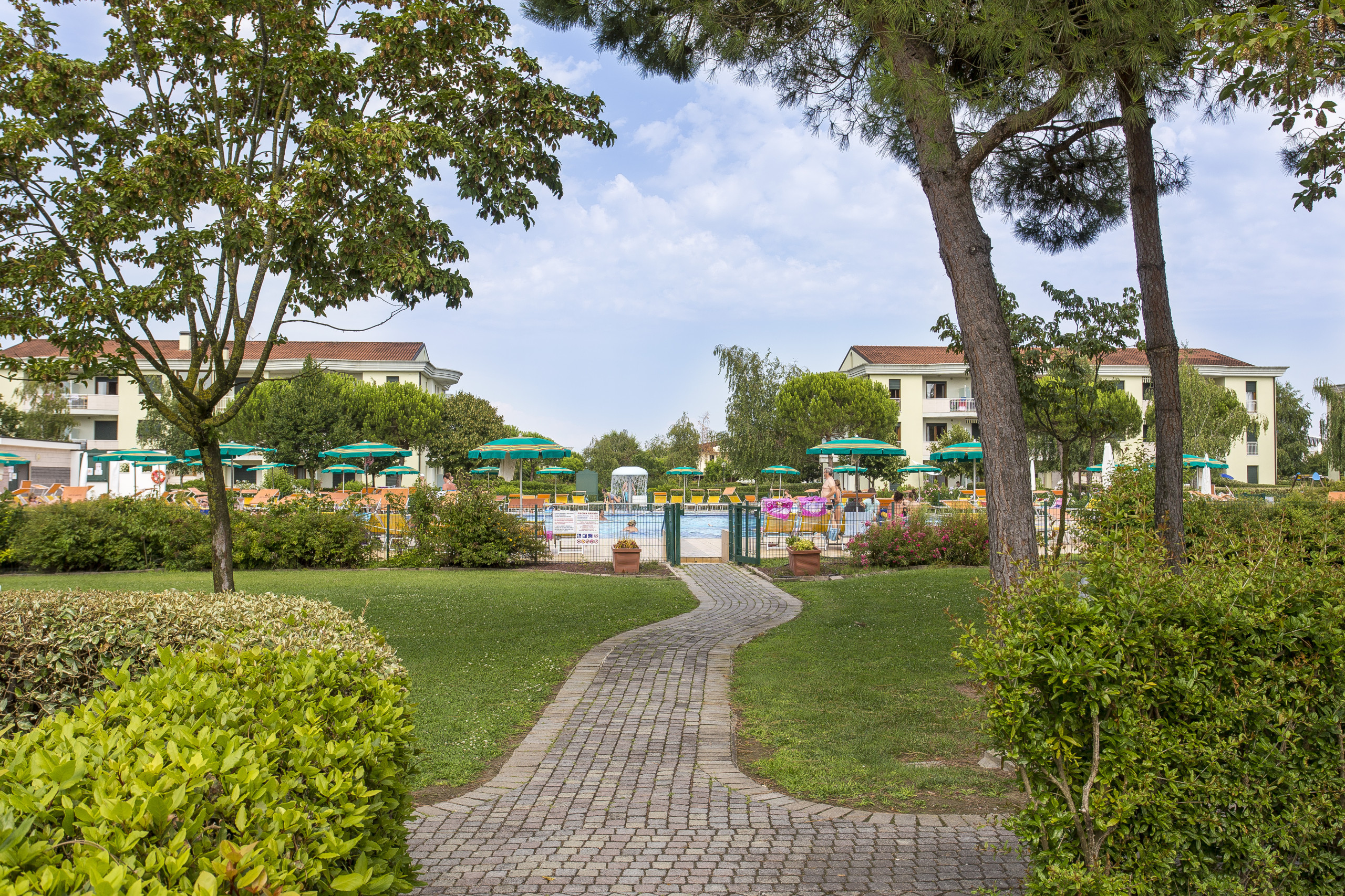 Lo caratterizzano ampi spazi nel giardino comune dotato di giochi, vialetti pedonali, di piscina per adulti e per bambini e area barbecue comune. Il Villaggio è dotato di parcheggi scoperti e di autorimessa. Wi-Fi gratuito nelle aree comuni.