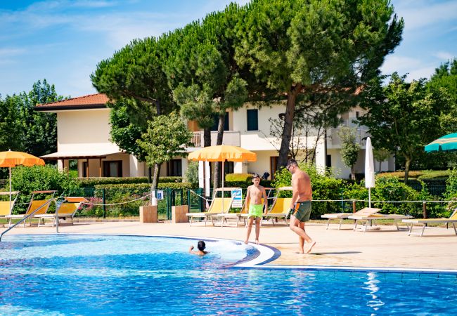 Villetta bilocale su 2 piani. Giardino, soggiorno con angolo cottura e divano letto matrimoniale, al 1 piano: bagno, camera matrimoniale con terzo letto. La Galleria "La Quercia" rappresenta il luogo di incontro dell' intera area di villaggi di Caorle Lido Altanea. E' composta da una vasta piazza e una galleria pedonale coperta con negozi, bar, ristoranti, piscina sopraelevata ed illuminata che fanno da cornice al villaggio formato da 22 negozi e 84 appartamenti. Disponibile servizio spiaggia a pagamento (informazioni all'ufficio Lampo di Caorle Lido Altanea).