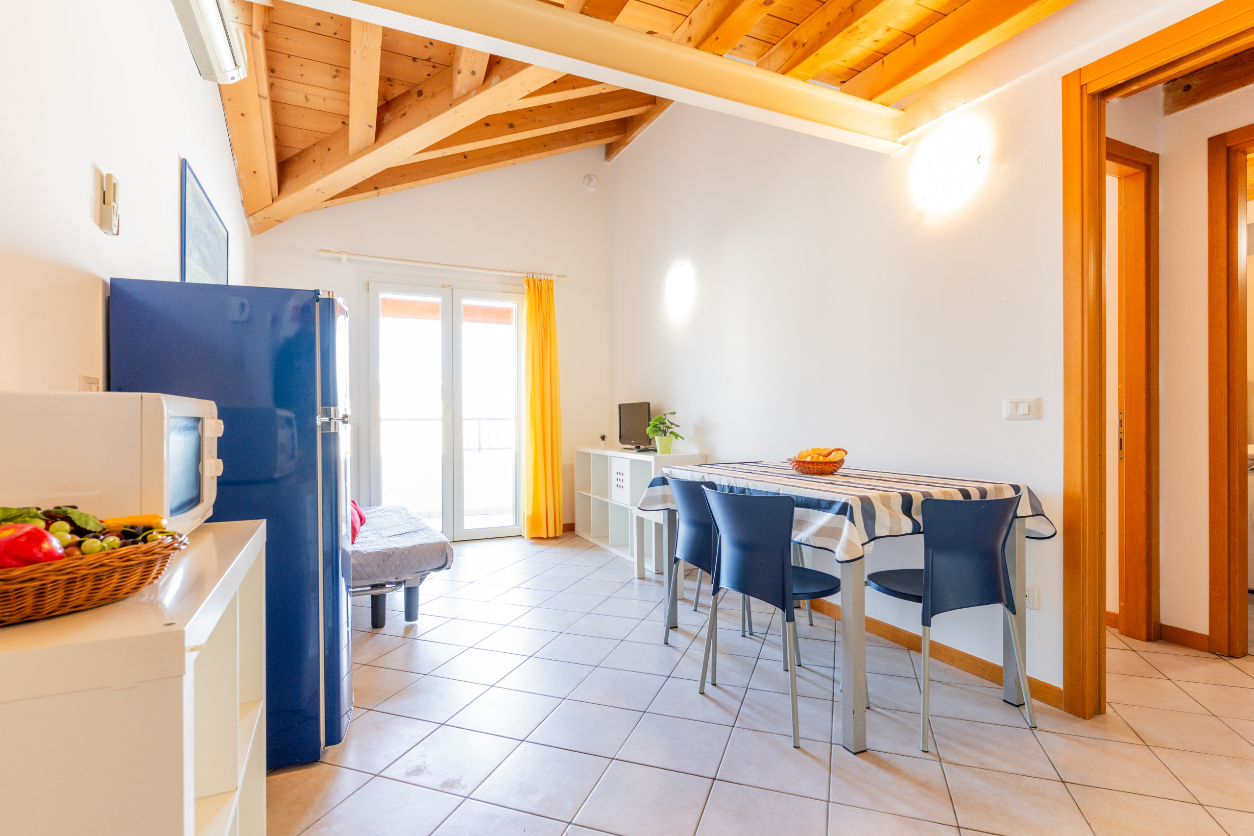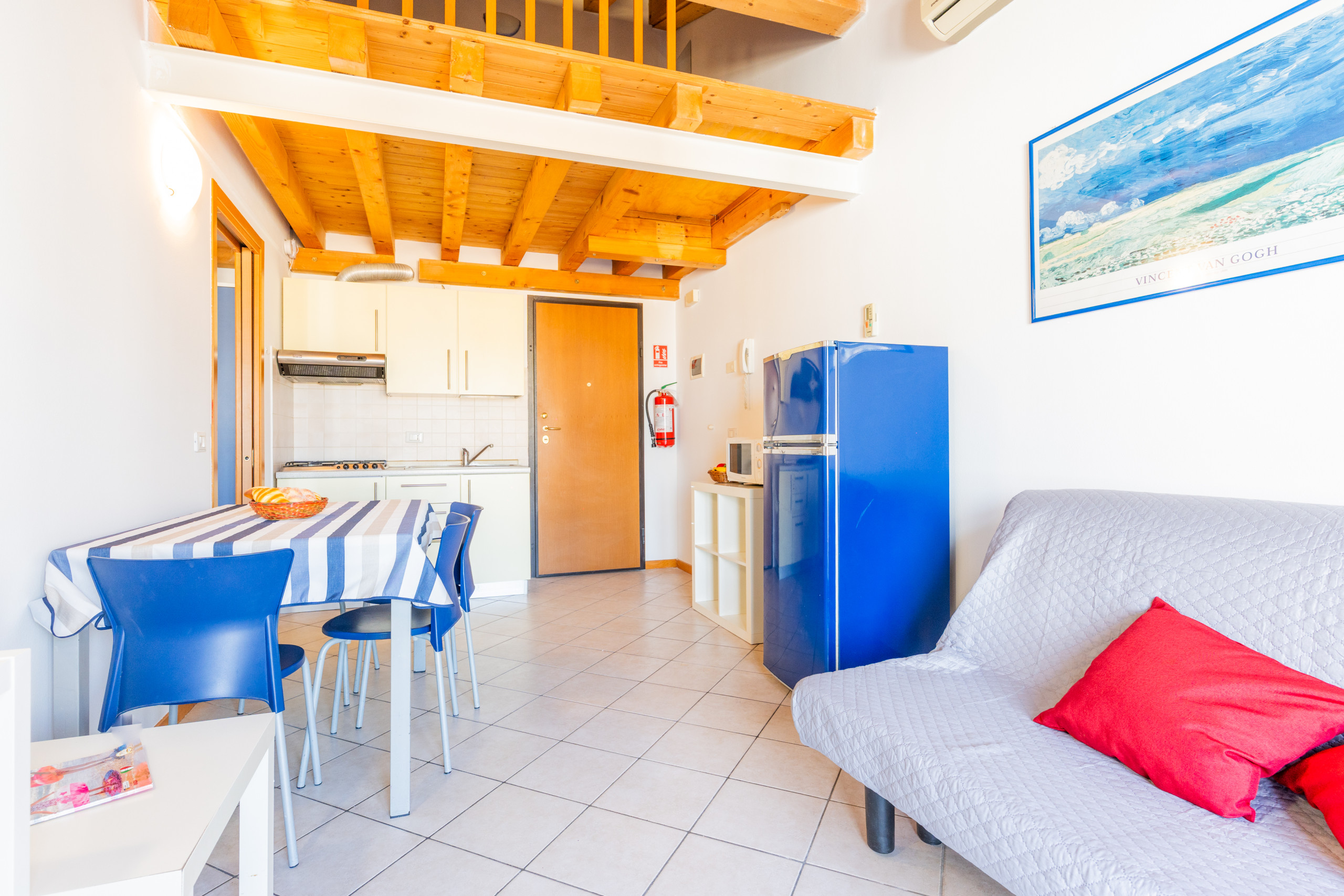 Monolocale con terrazzo al piano superiore del condominio, composto da soggiorno con letto matrimoniale, poltrona letto singola ed armadio letto singolo, angolo cottura, bagno. Il VILLAGGIO LUNA 2 è un villaggio situato nella Spiaggia di Ponente a circa 250 metri dal mare, composto da villette a schiera disposte su due piani, dotate di clima, cassaforte e posto auto numerato, alcune con giardino privato, altre con terrazza. Piscina per adulti e bambini con solarium annesso. Nel villaggio si trova anche un piccolo condominio dotato di ascensore (con ingresso largo 75 cm), con appartamenti di diverse tipologie tutti con terrazza.