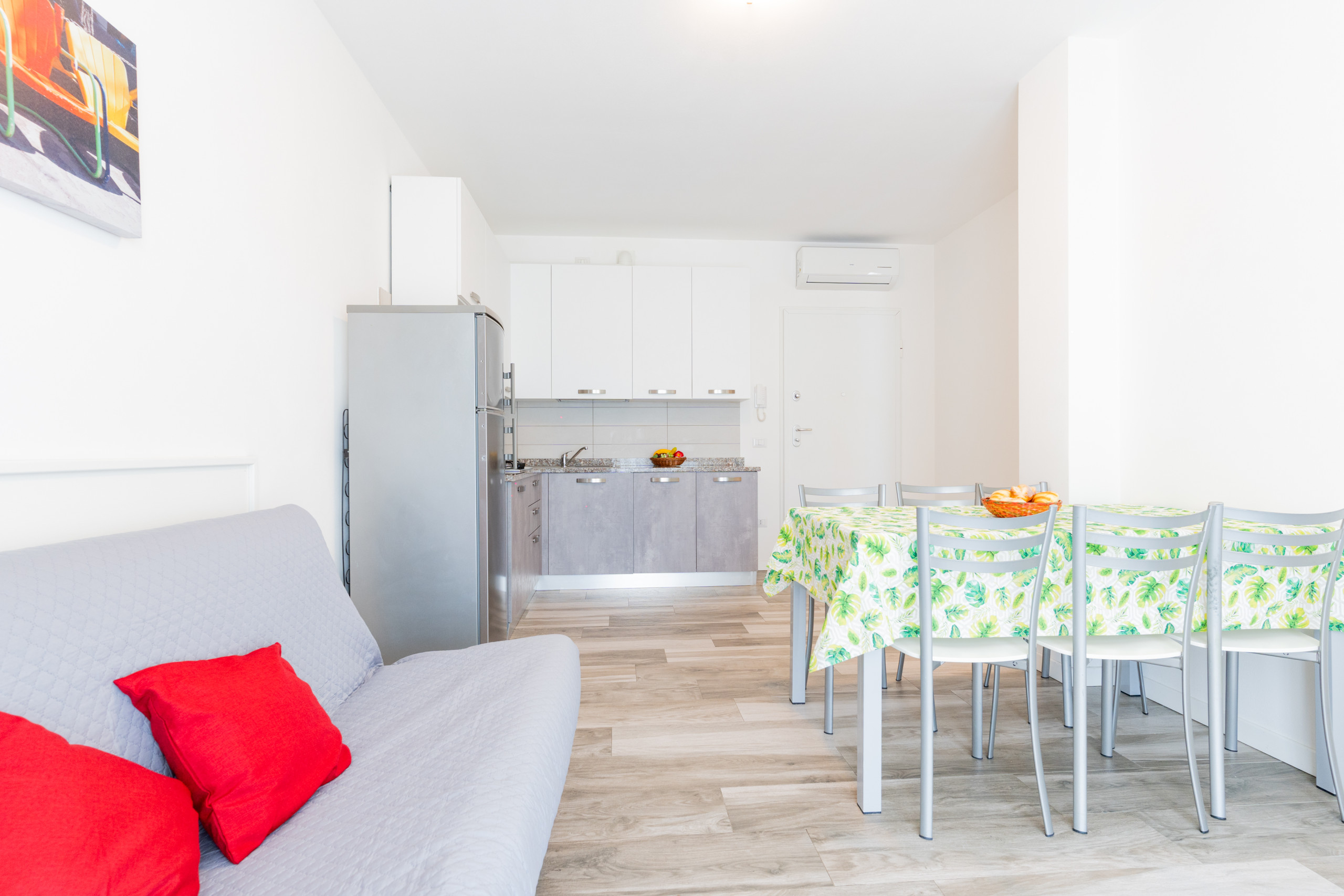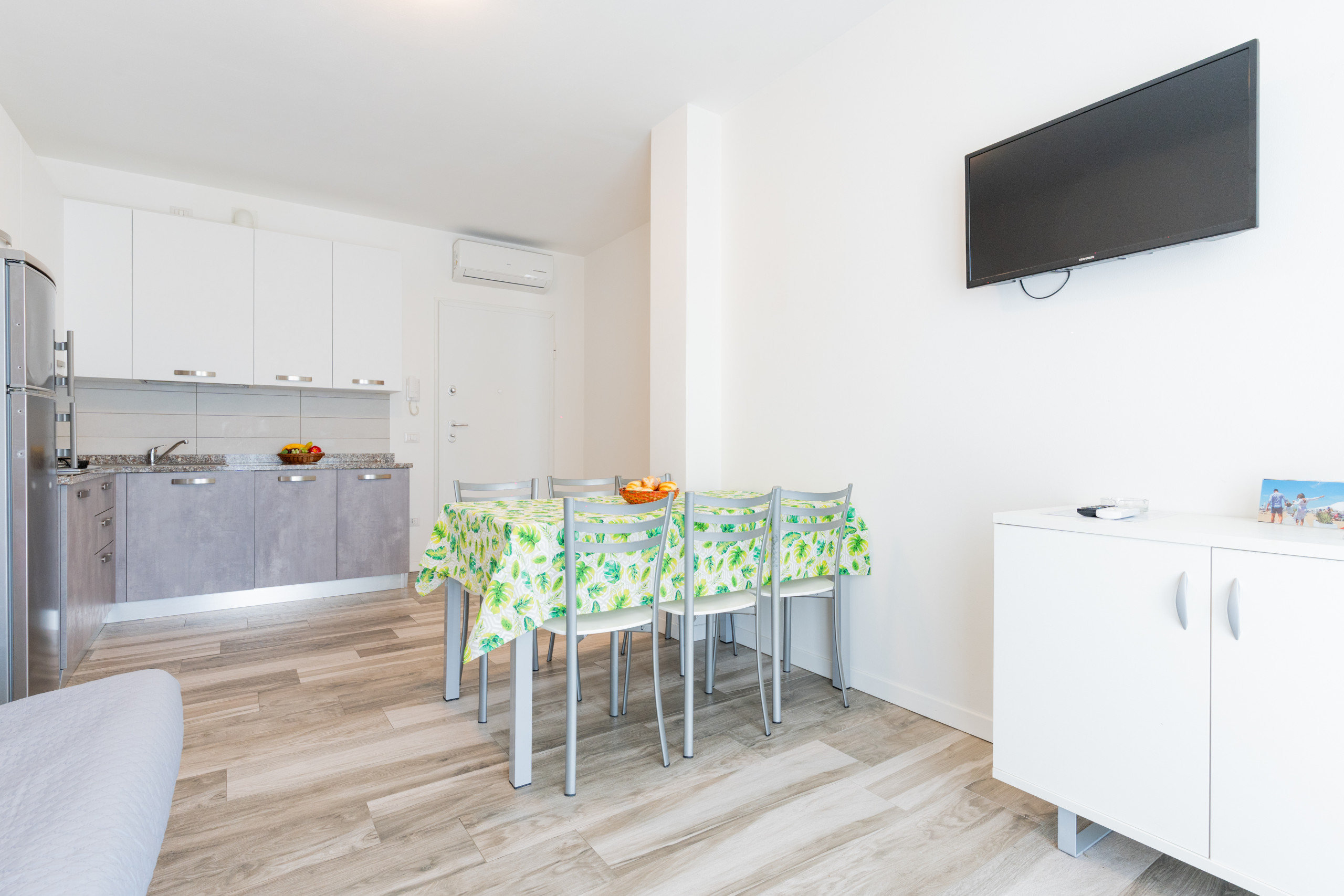 Gli appartamenti, dal design moderno e curato, offrono diverse esposizioni e viste, verso la piscina oppure sui vialetti interni del complesso.