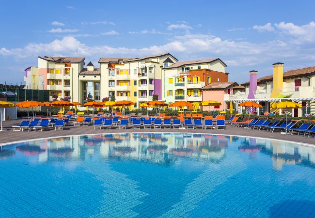I moderni appartamenti trilocali di circa 67 m² sono situati al piano terra, al 1°, 2° o 3° piano e dispongono di balcone, ideale per trascorrere pranzi e cene all’aperto. Alcune unità al piano terra sono invece dotate di giardino privato o spazio esterno piastrellato. Le diverse tipologie offrono esposizioni e viste variabili, con affaccio sulla piscina oppure sul vialetto interno.