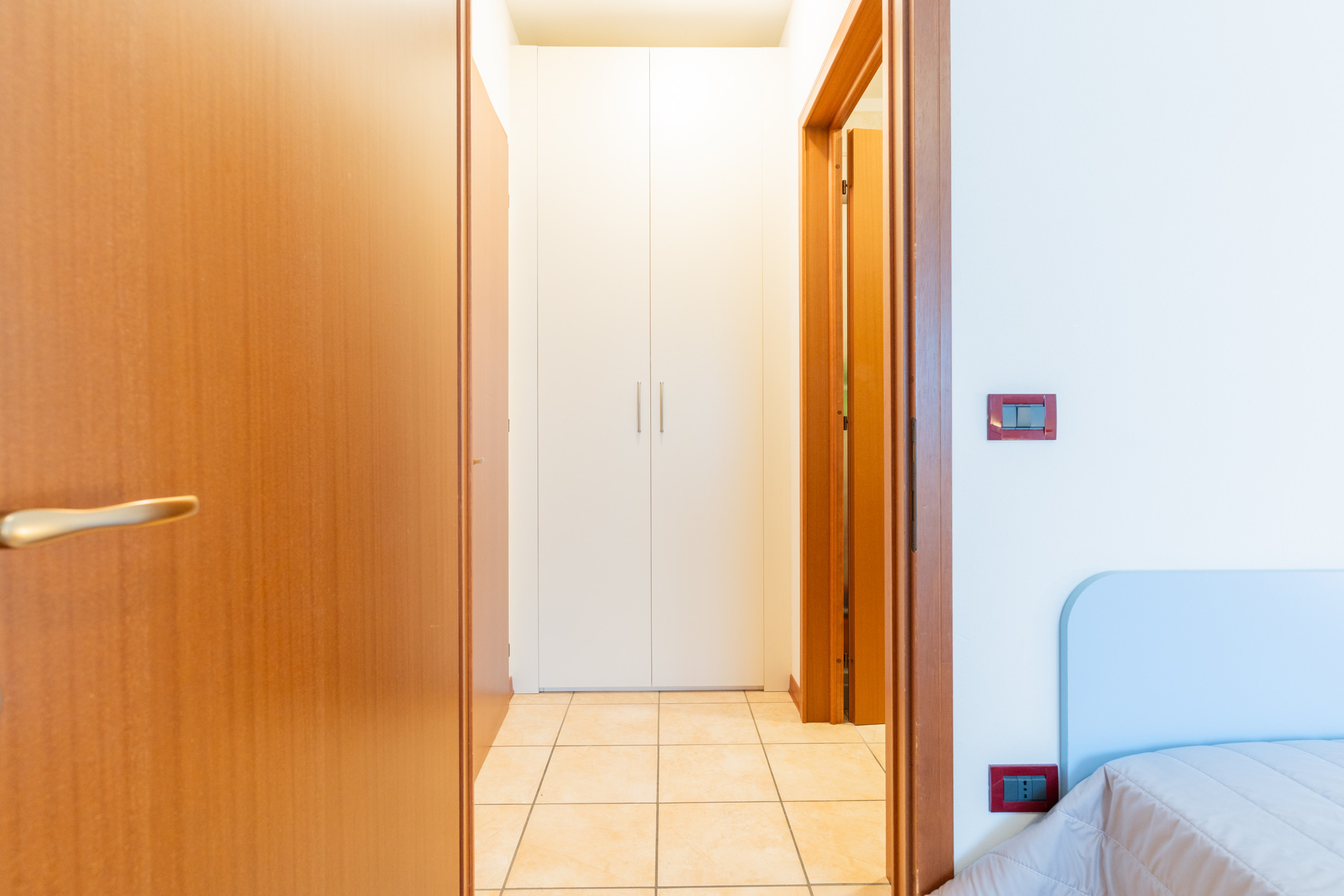 La camera da letto dispone di un letto matrimoniale e di un ulteriore letto singolo e bagno dotato di box doccia.