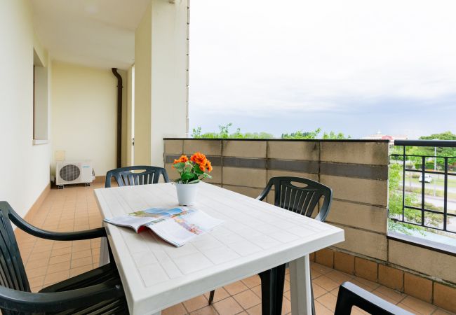 Gli appartamenti bilocali di circa 45 mq sono ideali per una vacanza rilassante e confortevole. Situati al piano terra o ai primi e secondi piani, offrono un balcone con vista sul viale interno altri invece con vista piscina.