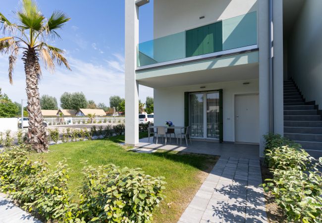 Gli eleganti appartamenti bilocali da 55 mq, situati al piano terra, uniscono design moderno e funzionalità. Ogni unità dispone di un giardino privato arredato, ideale per colazioni all’aperto o serate estive in famiglia.