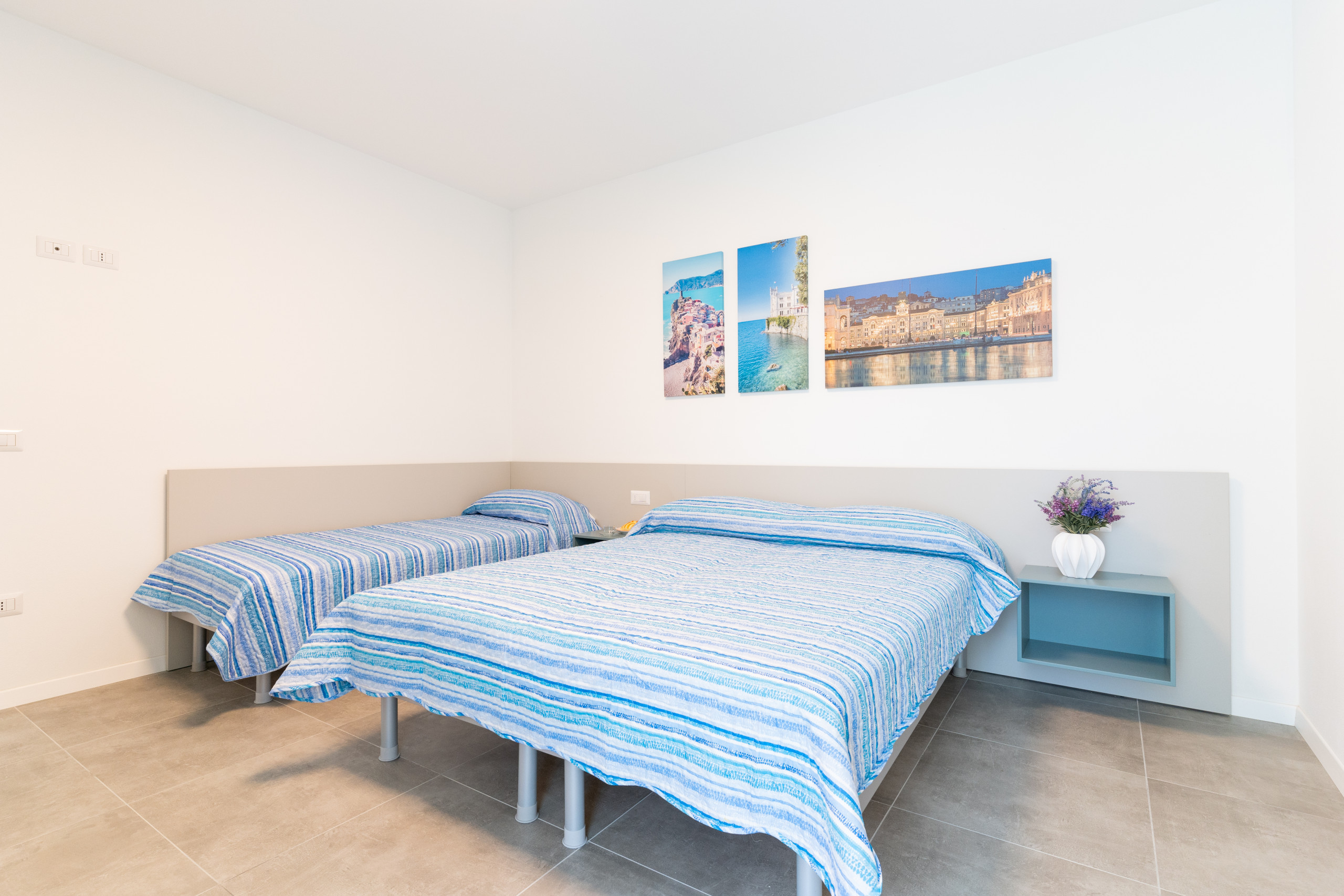 - due camere da letto, una con letto matrimoniale e letto singolo, l’altra con due letti singoli separati;