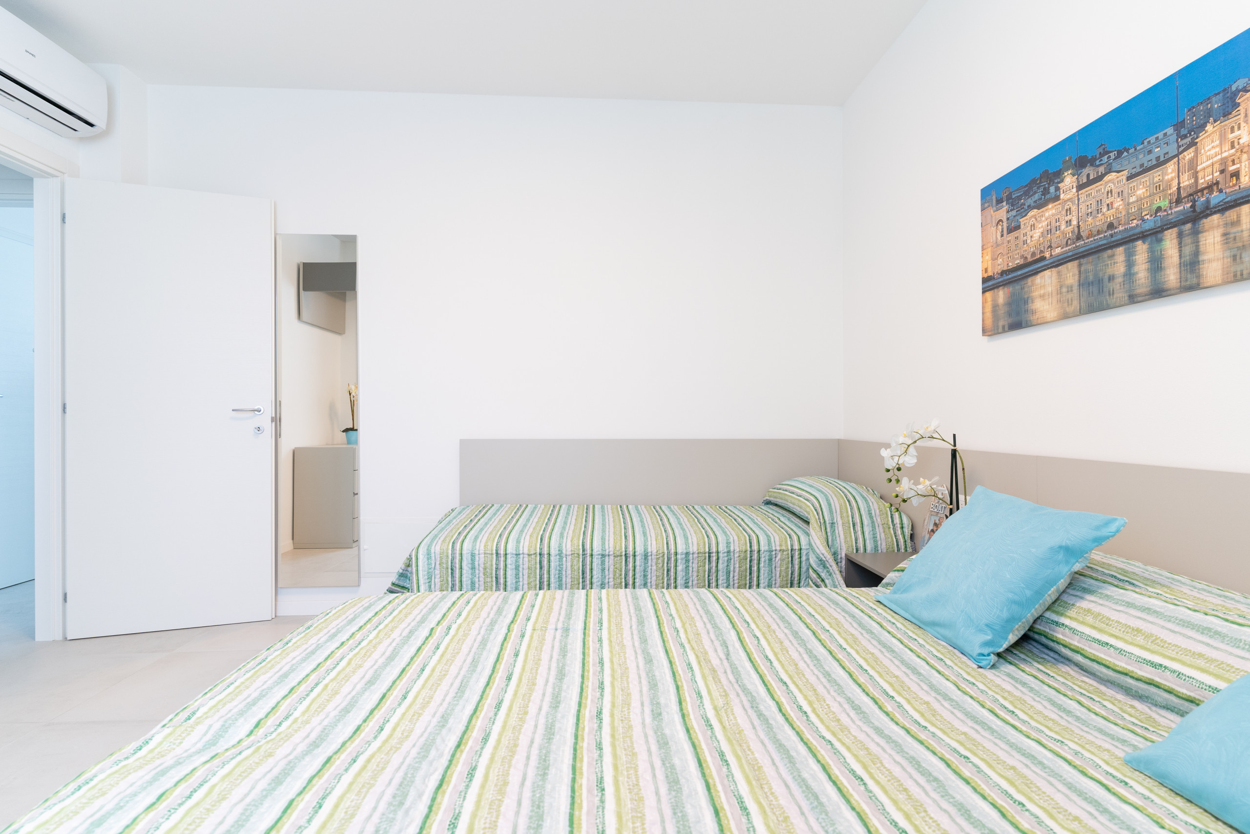 Ogni appartamento regala atmosfere uniche grazie alle sue diverse esposizioni: con vista sulla piscina, sul viale interno o sull’elegante Chiesa di San Benedetto.