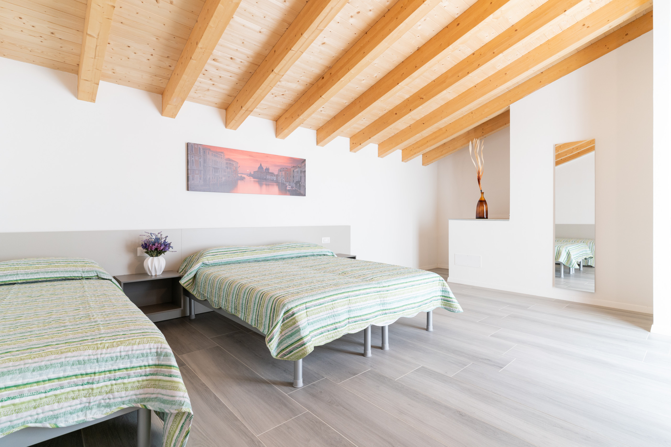 - Secondo piano mansardato, accessibile tramite scala interna: una confortevole camera con due letti singoli e un secondo bagno completo di box doccia.