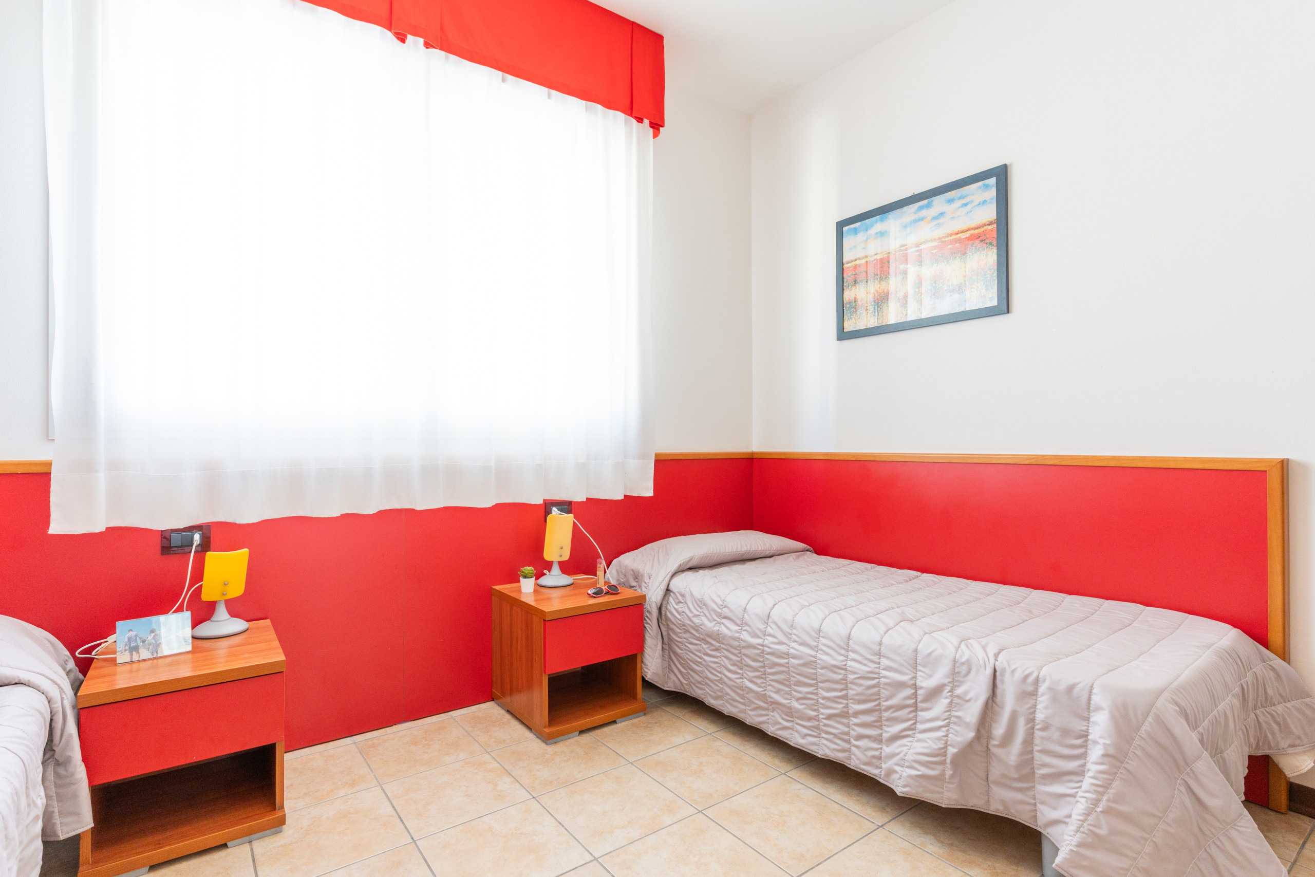 Tutti gli appartamenti si sviluppano su un unico livello e alcuni offrono la vista sulla piscina e altri con vista lateralmente. Il soggiorno dispone di angolo cottura attrezzato, tavolo, sedie e divano letto matrimoniale alla francese, con accesso al balcone o al giardino, ideale per pranzi e cene all’aperto. La camera principale è arredata con letto matrimoniale e letto singolo, mentre la seconda camera offre due letti singoli. Il bagno è spazioso e dotato di box doccia.