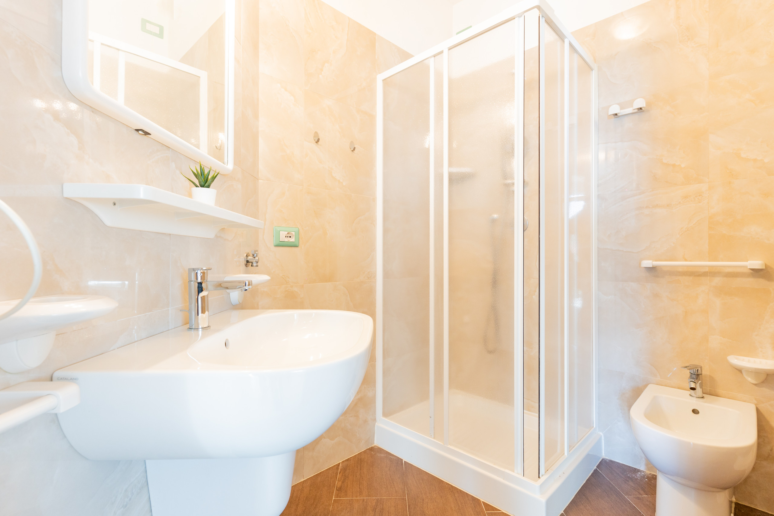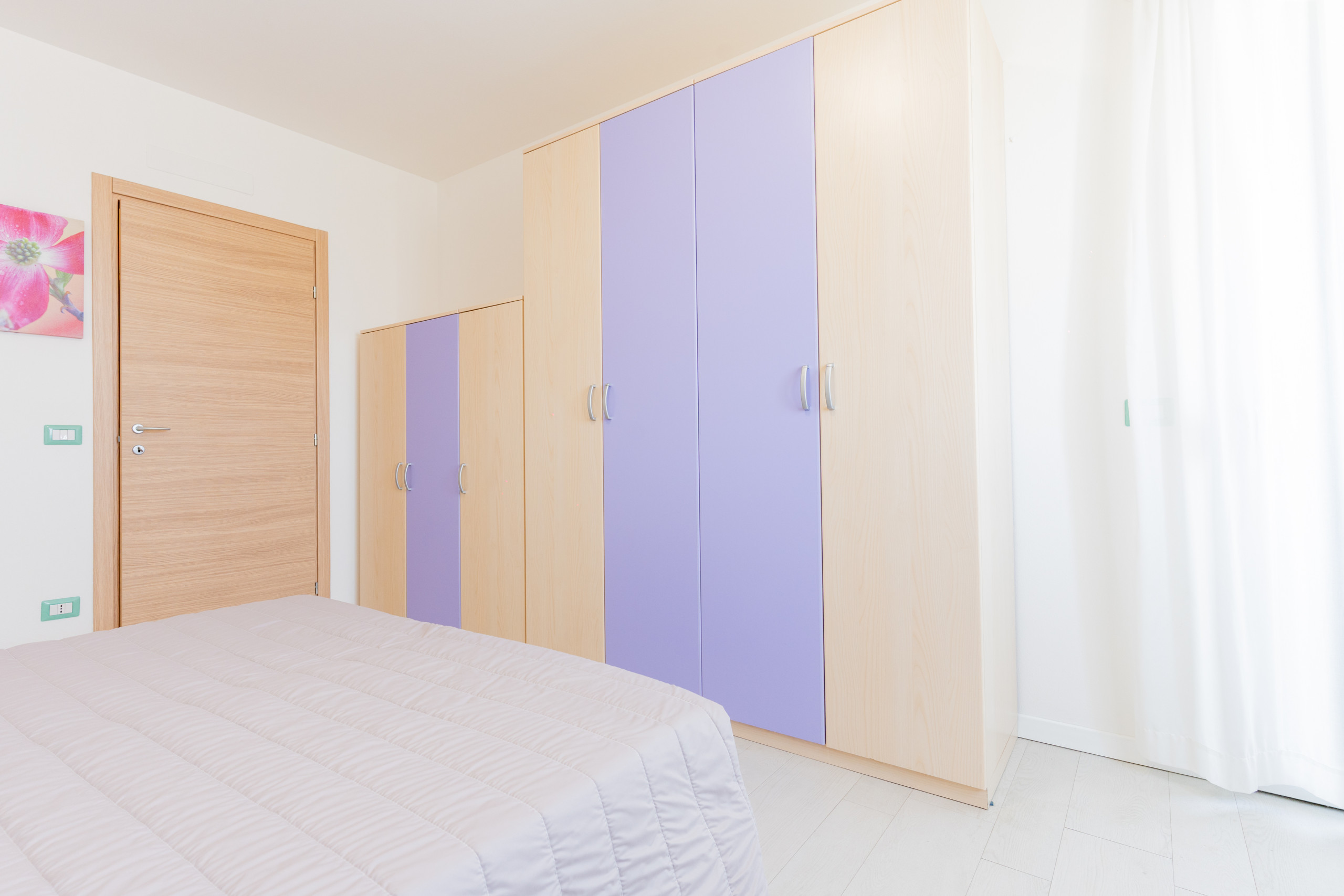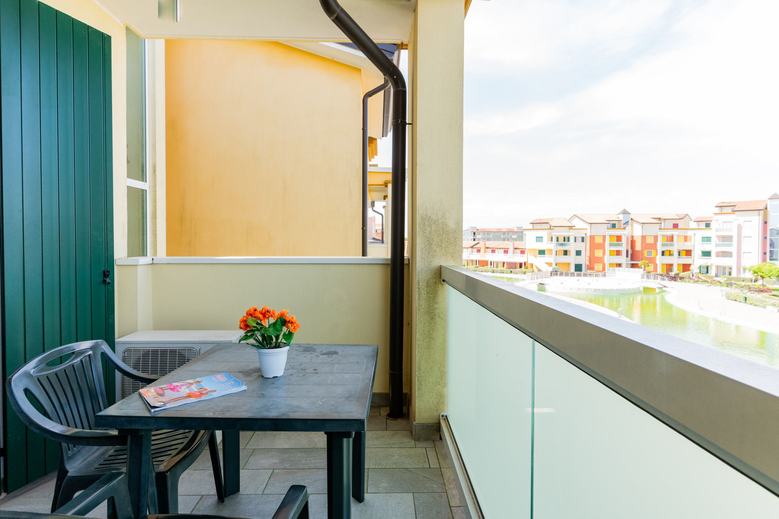 Gli appartamenti trilocali da 55 mq, situati al 1° o 2° piano, dispongono di un ampio balcone arredato con mobili da esterno, perfetto per colazioni, pranzi e cene all’aperto. Le unità sono servite da ascensore, per un accesso ancora più comodo.