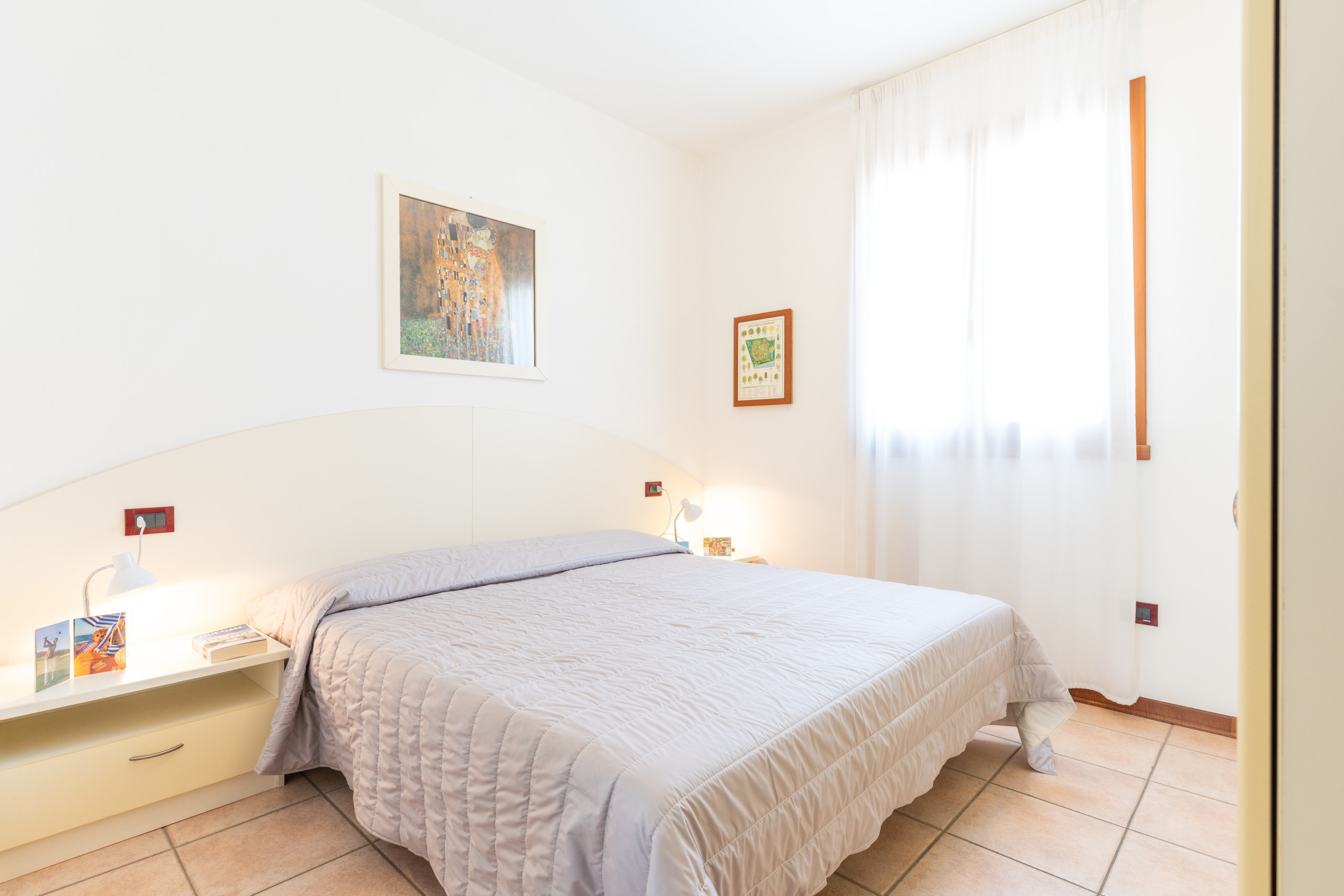 L’appartamento trilocale, situato al piano terra, può ospitare fino a 6 persone e offre spazi accoglienti e luminosi. Si compone di un soggiorno con angolo cottura attrezzato e divano letto matrimoniale, giardino privato ideale per pranzi o momenti di relax all’aperto, bagno con doccia, camera matrimoniale con terzo letto e cameretta con letto singolo.