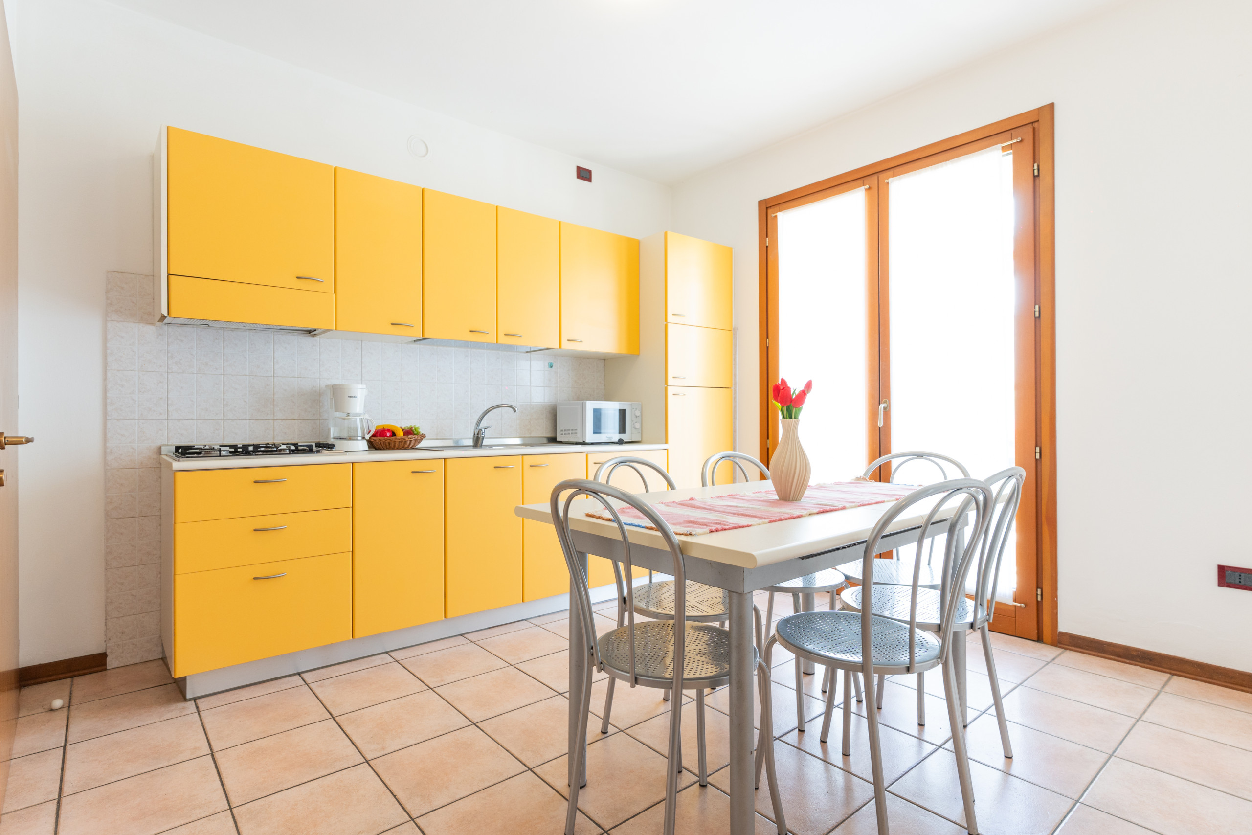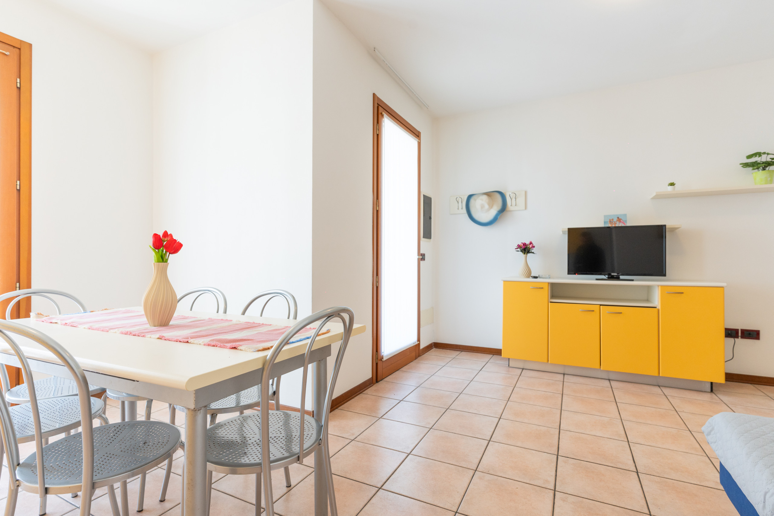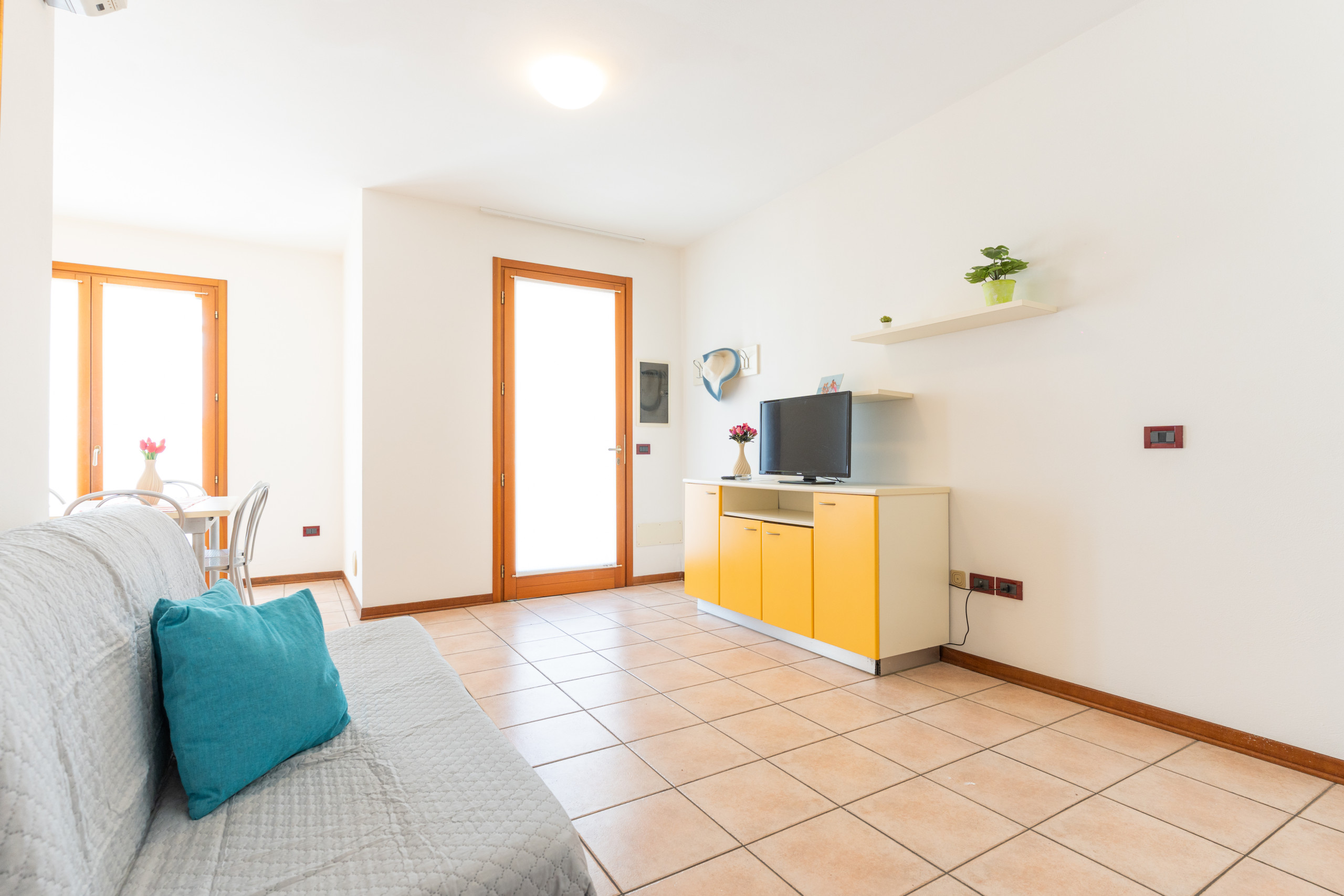 All’interno, gli appartamenti trilocali di circa 50 mq sono composti da una camera matrimoniale, una cameretta doppia e un soggiorno con angolo cottura attrezzato e divano letto doppio. Il bagno è moderno e dotato di box doccia.