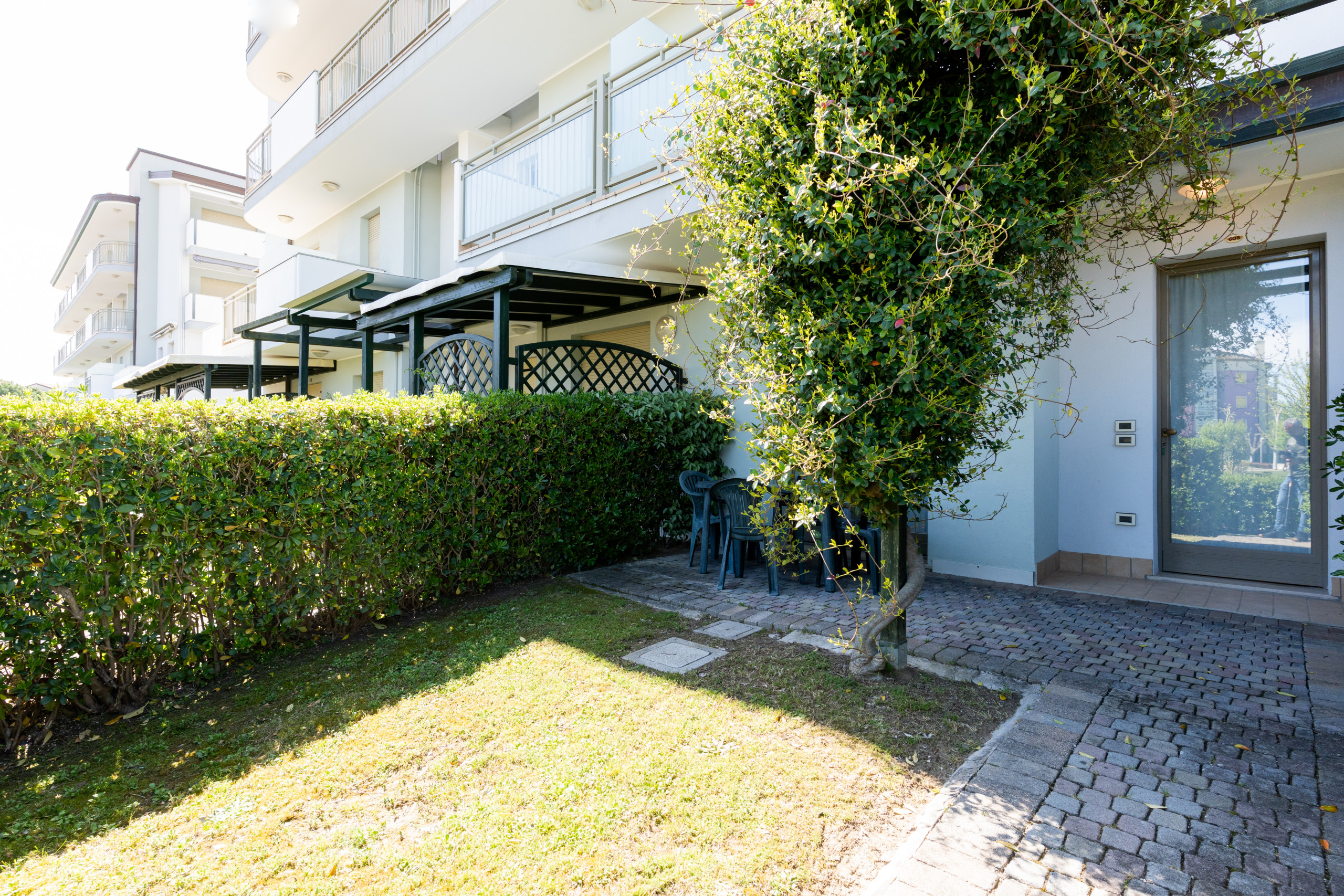 Il balcone e il piccolo giardino offrono uno spazio esterno dove rilassarsi dopo una giornata al mare. Il parcheggio privato esterno è un ulteriore vantaggio per chi viaggia in auto.