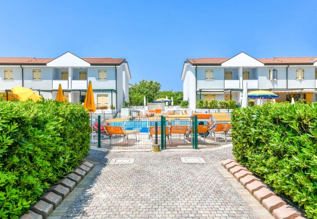 🏡 Le villette bilocali (42 mq) sono distribuite su due livelli e offrono spazi funzionali pensati per famiglie e coppie. Al piano terra, alcune dispongono di giardino privato con portico arredato, altre invece di un portico coperto con tavolo e sedie da esterno, perfetto per pranzi e cene all’aperto. Gli affacci possono essere diretti o laterali sulla piscina, sempre con scorci piacevoli.