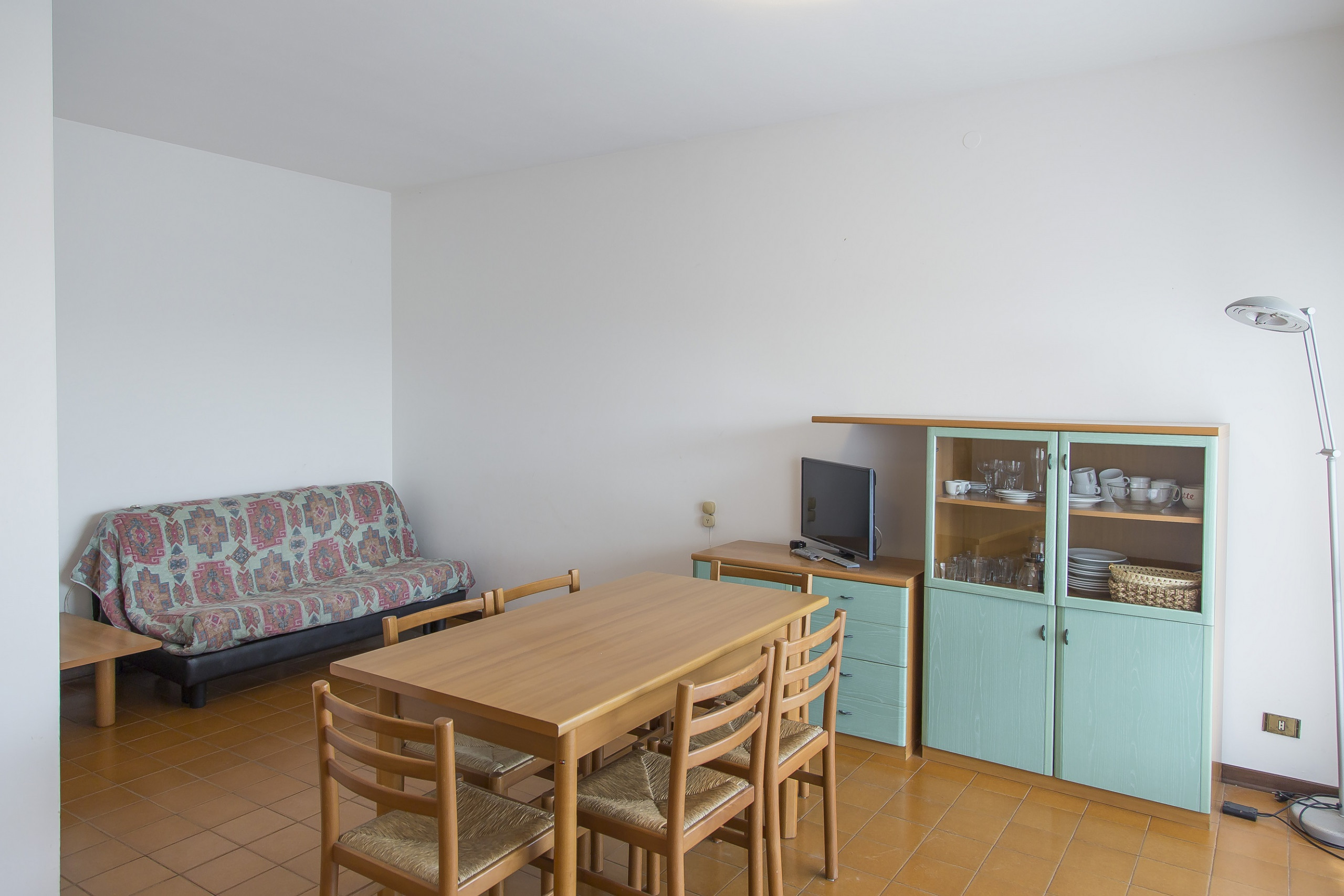 Bilocale con 4 letti più divano. Appartamento, sito nel blocco "C", di piano terra (al quale si accede dall'esterno del residence) composto da una camera matrimoniale più letto a castello, ampio soggiorno con angolo cottura e divano letto matrimoniale, un bagno. Terrazzo coperto e giardino recintato. Il residence Garuda "C" è un fabbricato facente parte del complesso "Garuda". Il residence è situato in una bellissima posizione fronte mare a Ca' di Valle (Cavallino) ed offre una bella area verde con piscina e servizio di custode, non c'è ascensore. Offre appartamenti di varie tipologie con posto auto, uno per ogni appartamento, numerato. Il posto spiaggia, riservato, è a pagamento ed obbligatorio e non incluso nel prezzo.