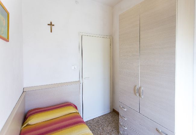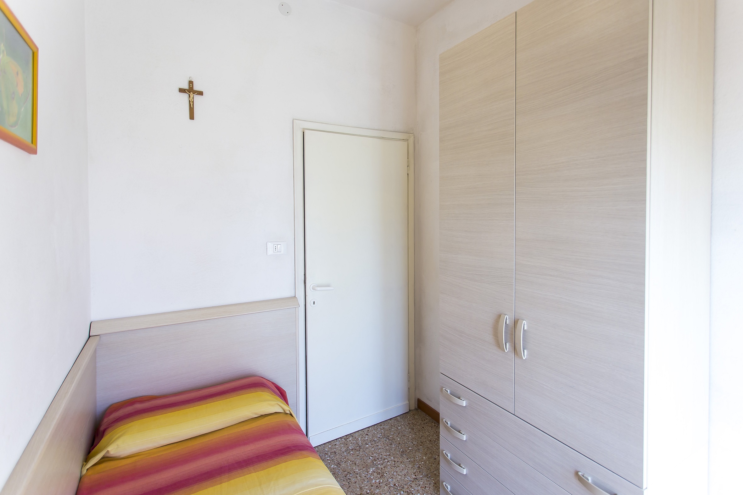 Trilocale con 4 letti. Appartamento sito nello stabile denominato "Giannina A", sito al secondo piano (senza ascensore), composto da una camera matrimoniale più letto singolo, una cameretta conletto singolo, cucina , senza divano, bagno. Piccolo terrazzo. La "Villa Giannina A" è un piccolo stabile recintato a circa 40 metri dal mare in zona centralissima a Lido di Jesolo tra Piazza Mazzini e Piazza Brescia. Dispone di appartamenti di varie tipologie tutti climatizzati, alcuni anche con balcone. Il posto spiaggia, riservato, è obbligatorio ed a pagamento, non incluso nel prezzo. Il posto auto, uno per ogni appartamento, è recintato e numerato.