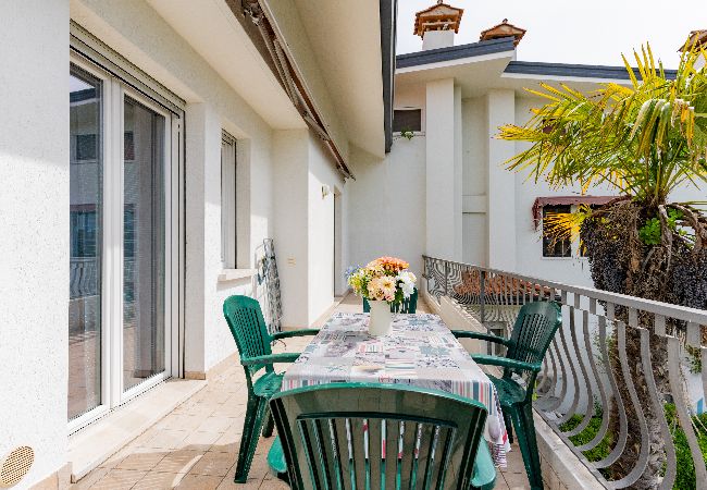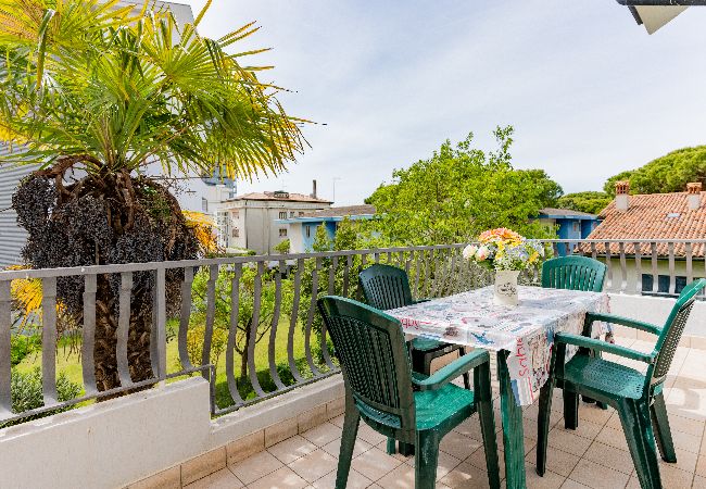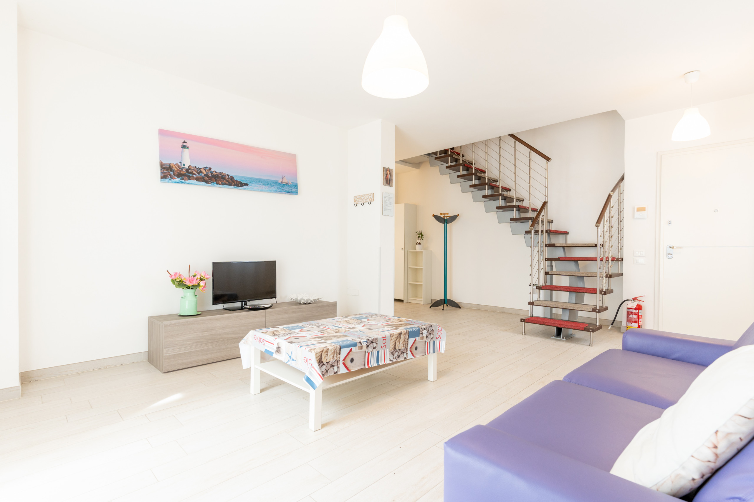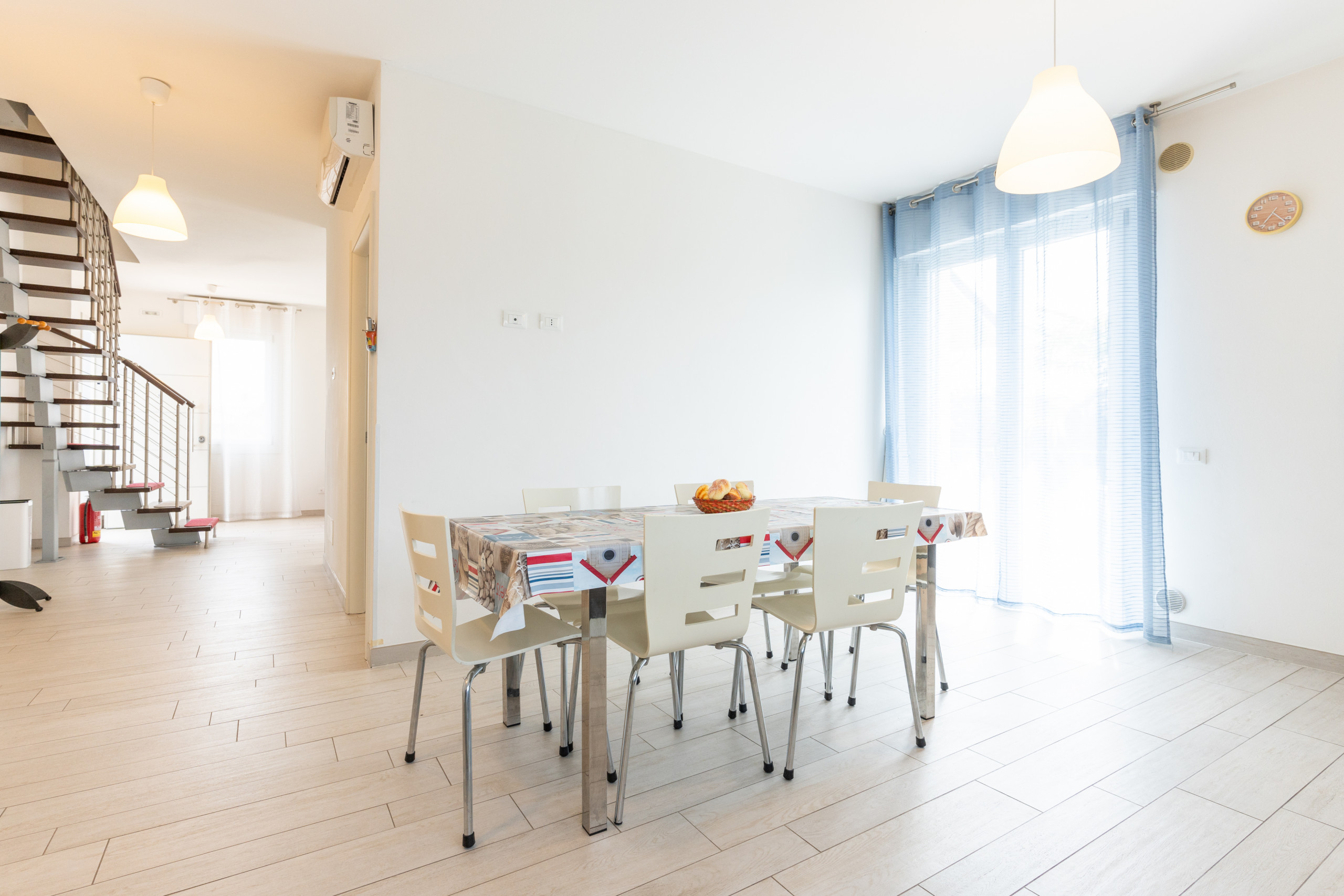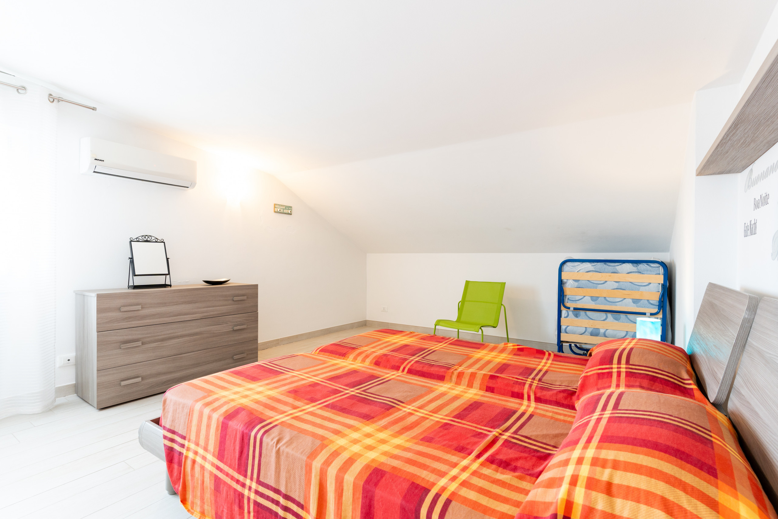 SOLO PER FAMIGLIE - Appartamento ristrutturato, situato al primo piano e disposto su due livelli. Il primo piano è composto da un soggiorno con divano e tv, una cucina abitabile (dotata di frigo a colonna, forno e fornelli), un bagno finestrato con box doccia, aria condizionata, terrazzo abitabile. Al piano mansardato c'è una camera con letto matrimoniale e due letti singoli, una camera matrimoniale, un secondo bagno finestrato con box doccia e lavatrice, aria condizionata (uno split in ogni camera). A disposizione un posto auto scoperto. L'appartamento non è fornito di posto spiaggia.