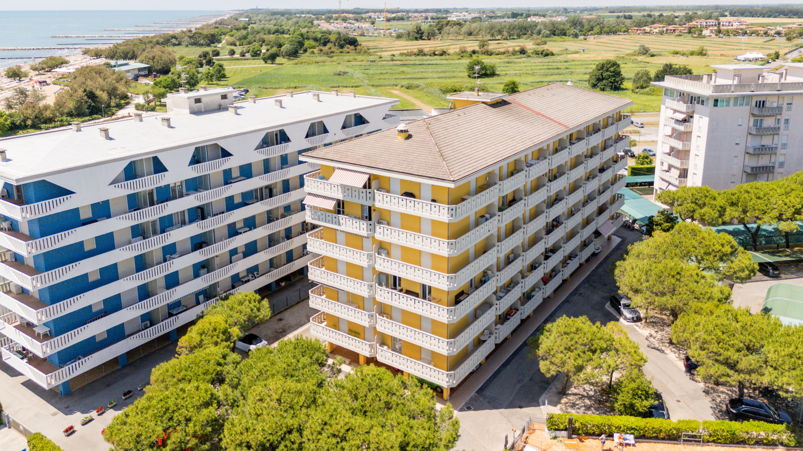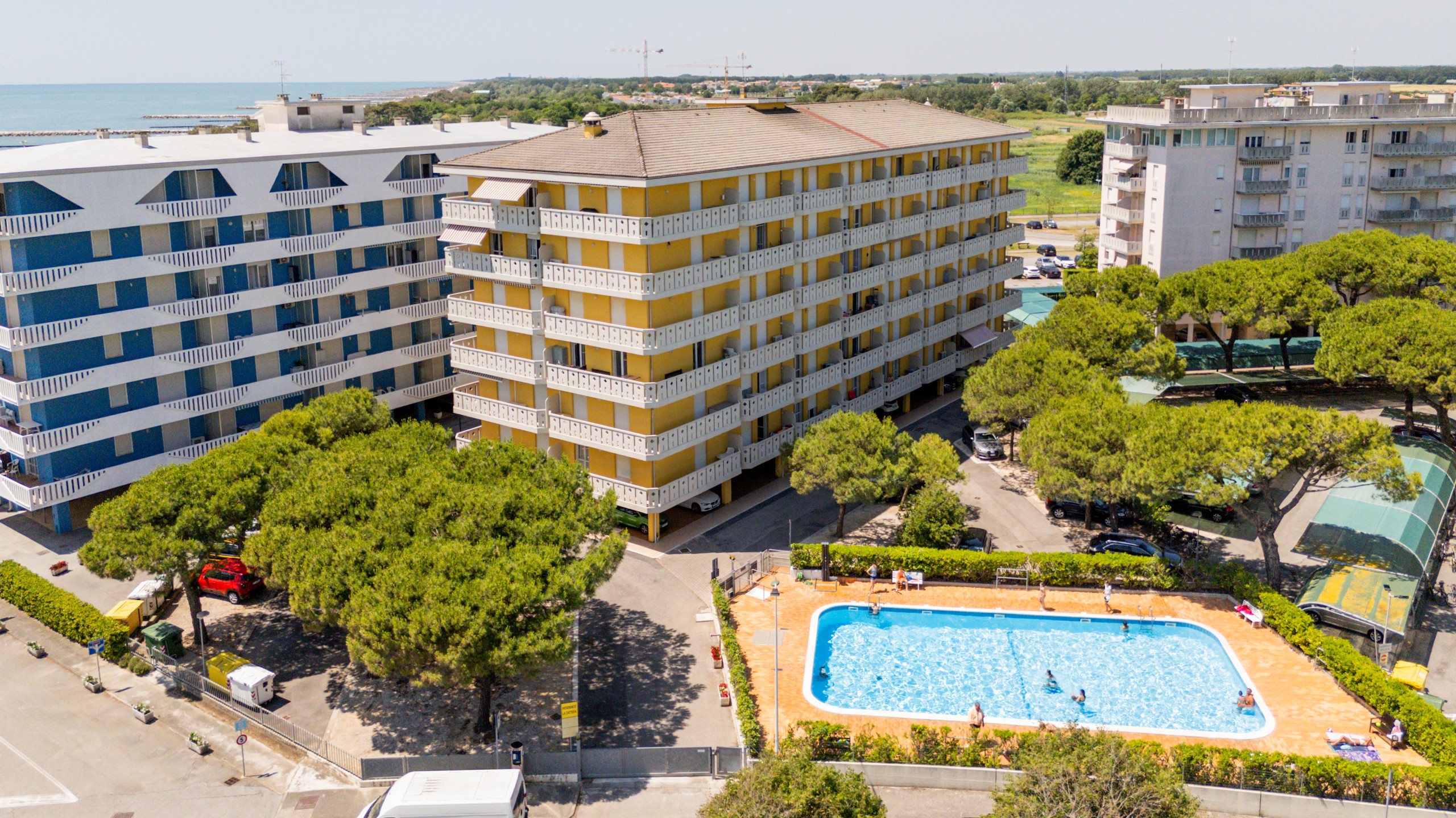 Ogni appartamento gode di terrazzo esclusivo, aria condizionata, TV e posto auto privato che ti garantiranno un soggiorno senza pensieri. E per rendere la tua esperienza ancora più speciale, troverai incluso anche un posto spiaggia riservato. La struttura dispone inoltre di una piscina condivisa, ideale per momenti di svago e relax in compagnia.
