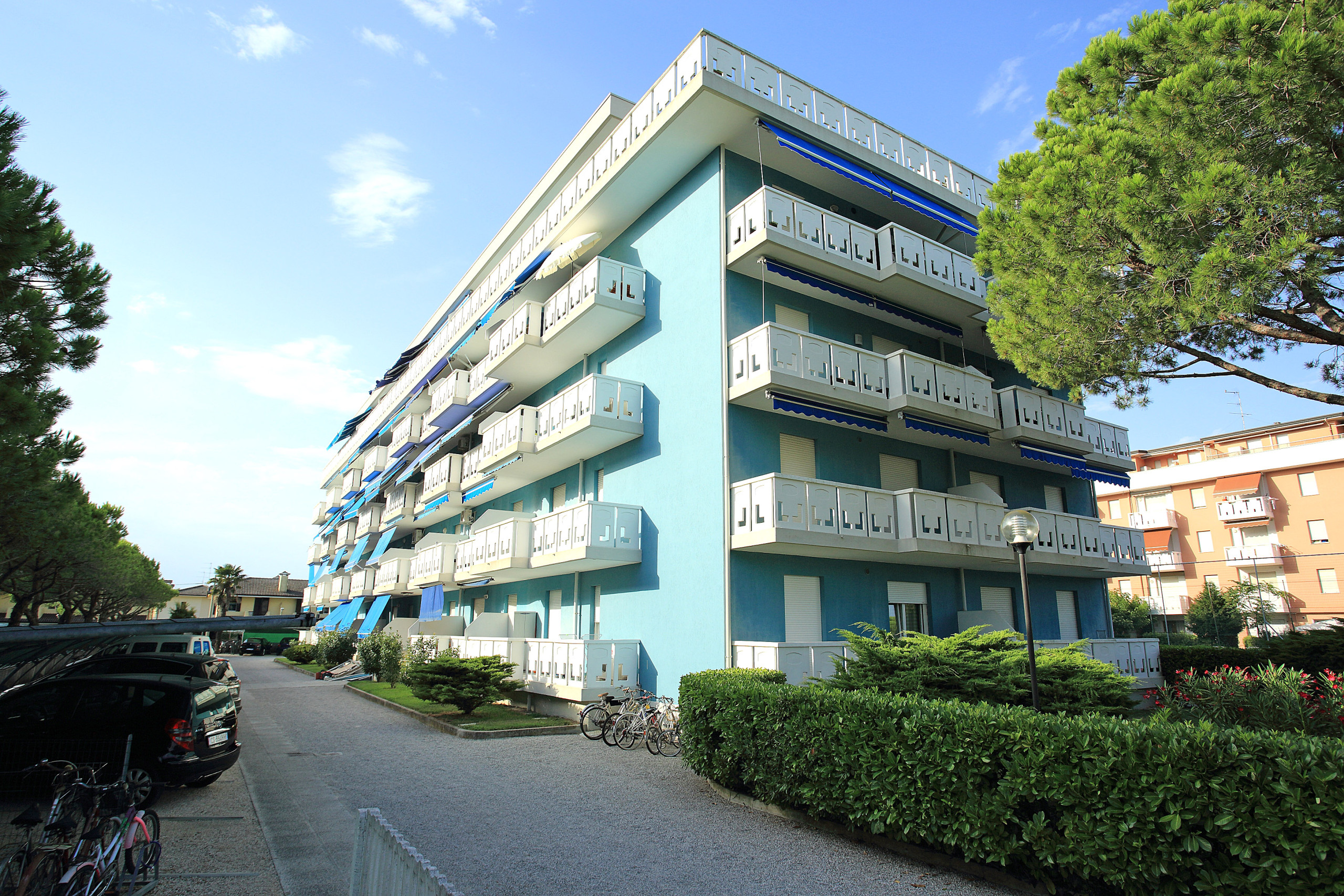 Ogni appartamento dispone di un terrazzo esclusivo, aria condizionata, TV e posto auto privato, per un soggiorno senza preoccupazioni. Inoltre, per rendere la tua esperienza ancora più piacevole, avrai a disposizione anche un posto spiaggia riservato.