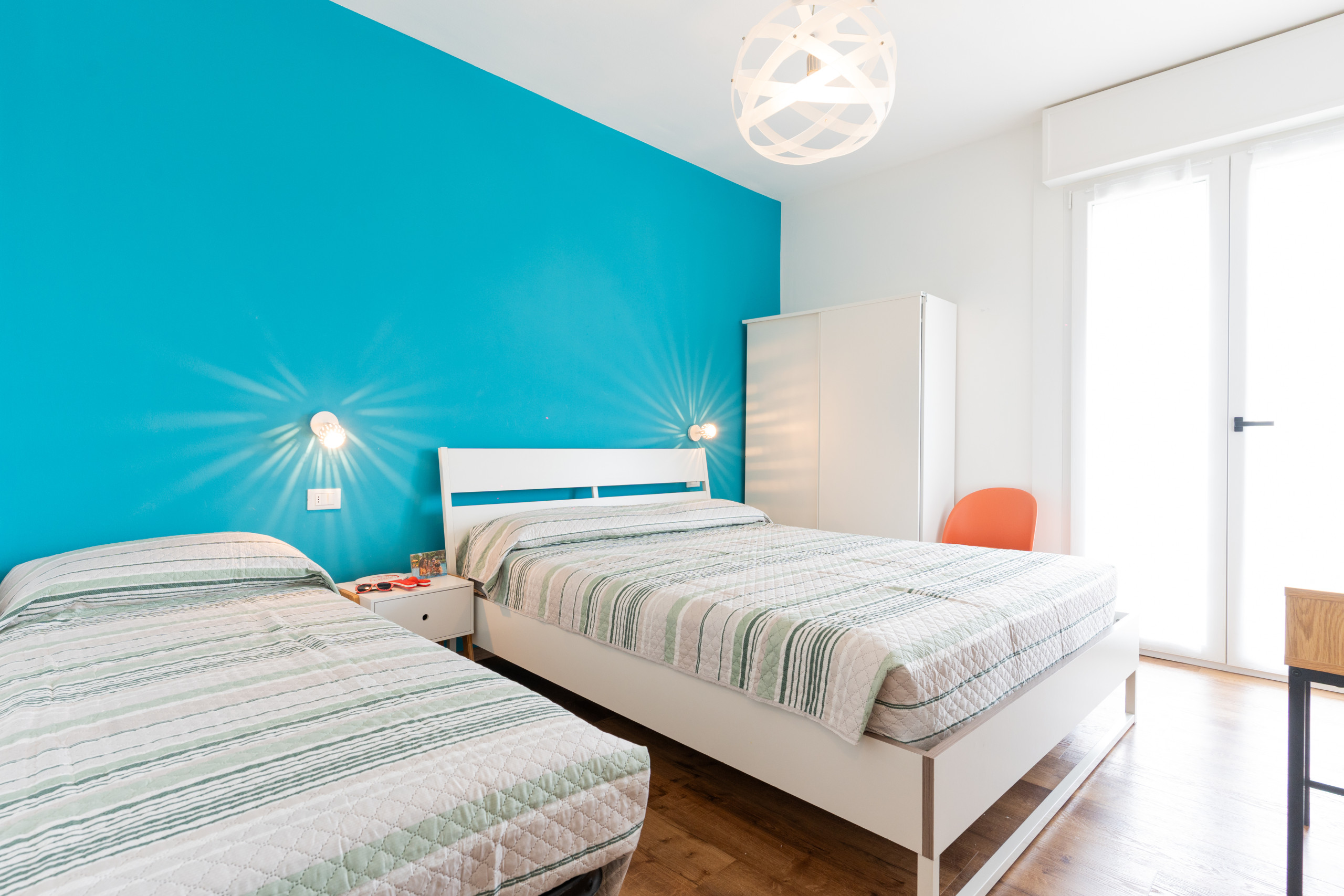 - Una camera da letto con letto matrimoniale e letto singolo.
