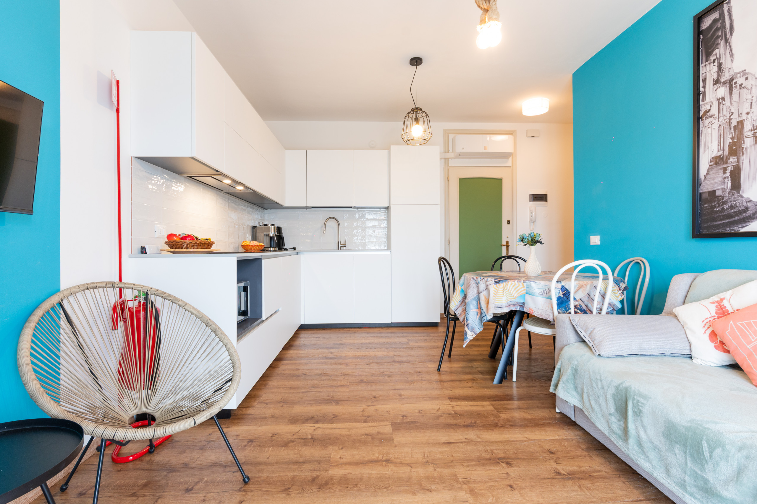- Dotazioni che renderanno più comodo il tuo soggiorno, tra cui tutto il necessario per cucinare, piano cottura a induzione, microonde e lavatrice.