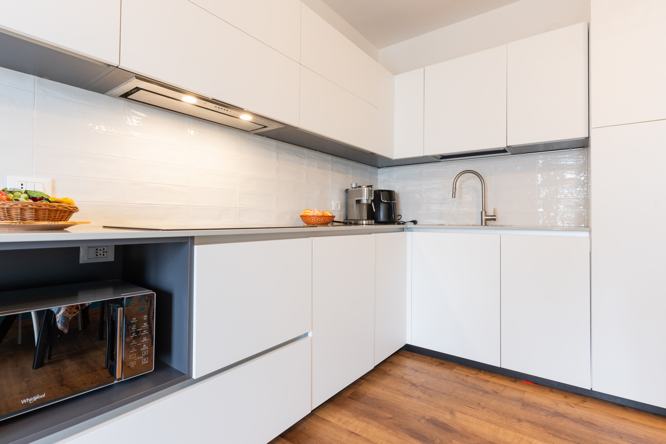 Inoltre, troverai tutto il necessario per cucinare, tra cui piano cottura a induzione, microonde, lavatrice e lavastoviglie.
