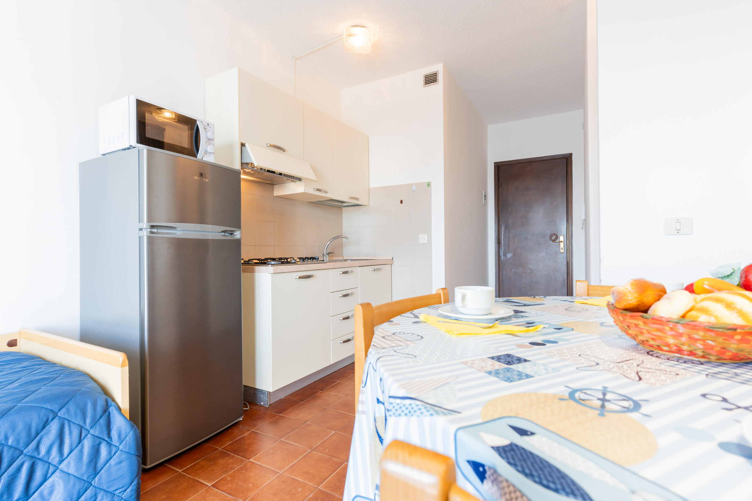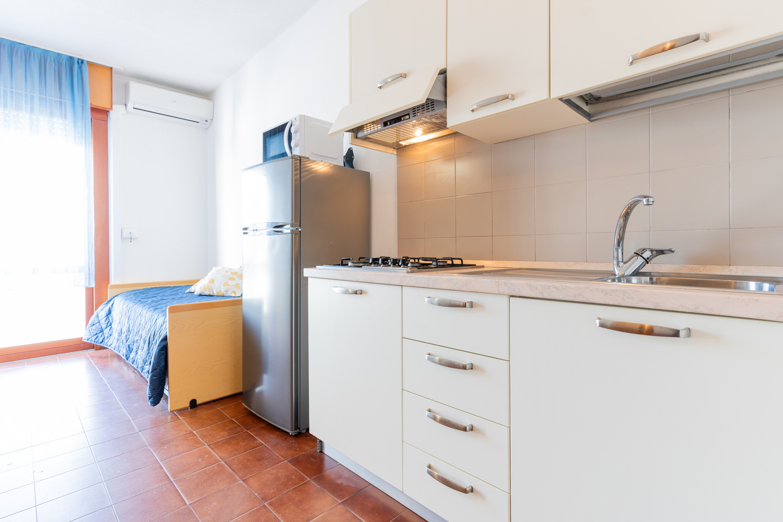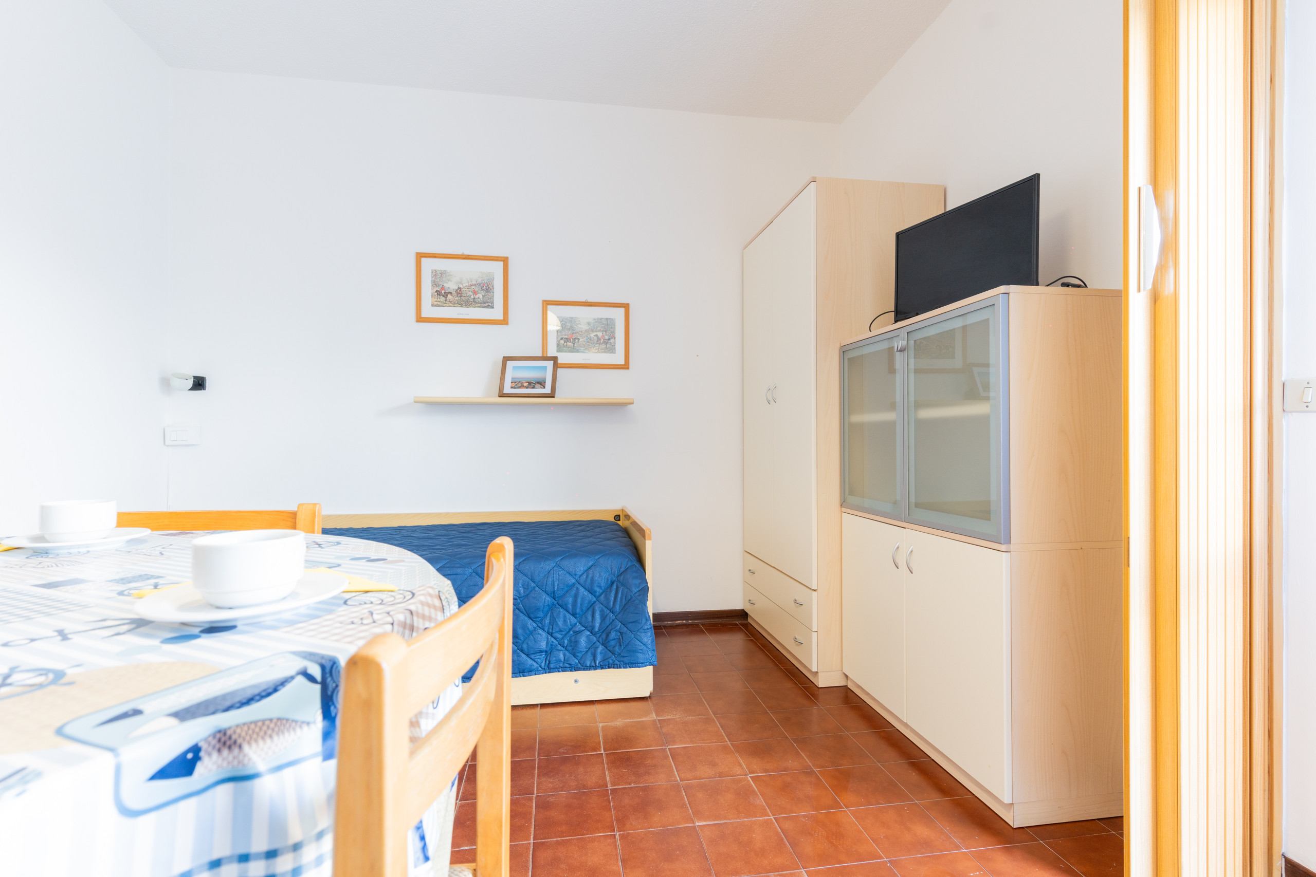 Gli appartamenti monolocali, situati tra il 3° e il 4° piano del residence, si estendono su 35 mq e, grazie ai balconi con diverse esposizioni, offrono panorami suggestivi.