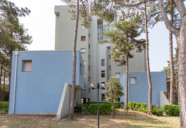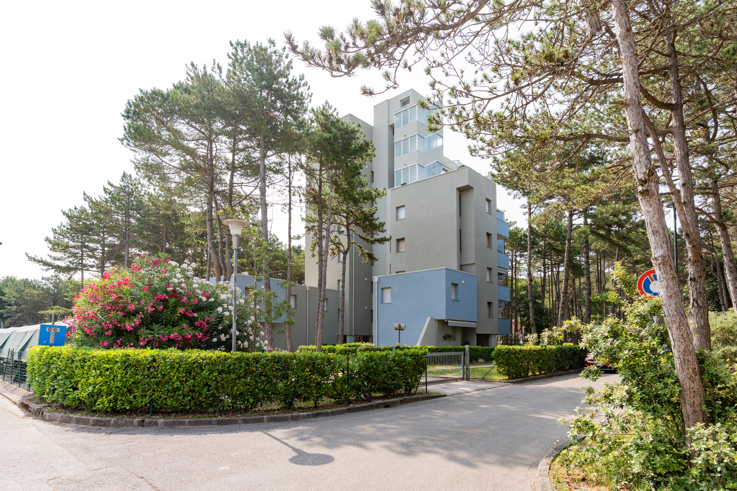 Die renovierten Dreizimmerwohnungen, die sich zwischen dem zweiten und dritten Stock befinden, bieten geräumige Terrassen oder Balkone mit Ausrichtung nach Süden oder Nordwesten, ideal zum Genießen eines Kaffees in der Sonne oder eines Abendessens im Freien mit Blick auf verschiedene Ausblicke von Bibione.