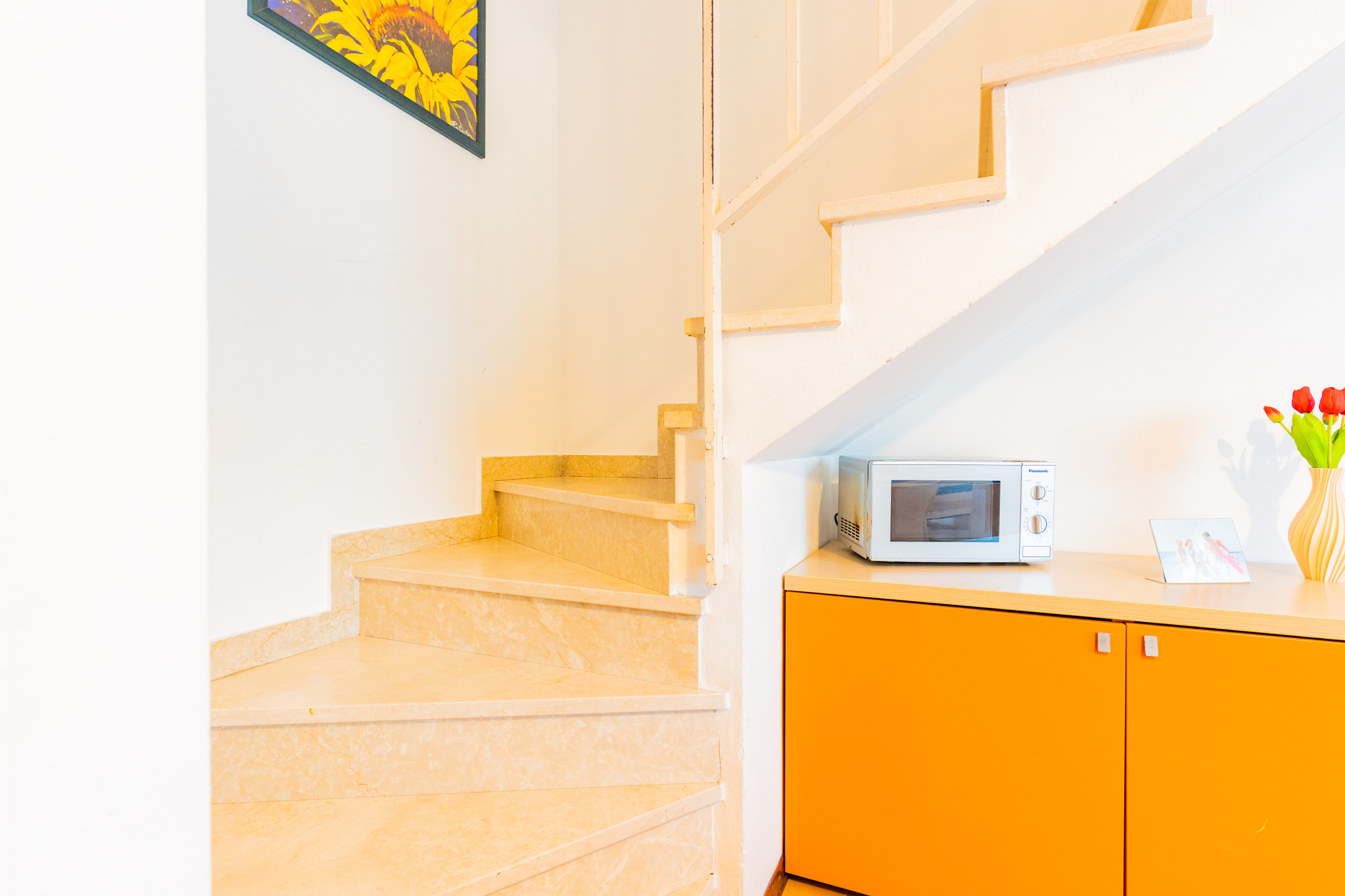 Im ersten Stockwerk, das über eine Innentreppe zugänglich ist, befindet sich die Schlafzone, bestehend aus: einem Doppelzimmer, einem Zimmer mit zwei Einzelbetten und einem Badezimmer mit Dusche.