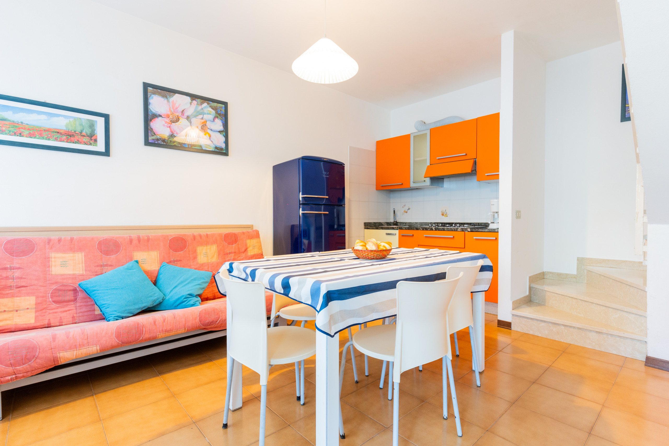 Im Erdgeschoss befinden sich: ein gemütliches Wohnzimmer mit ausgestatteter Küchenzeile und Doppelschlafsofa