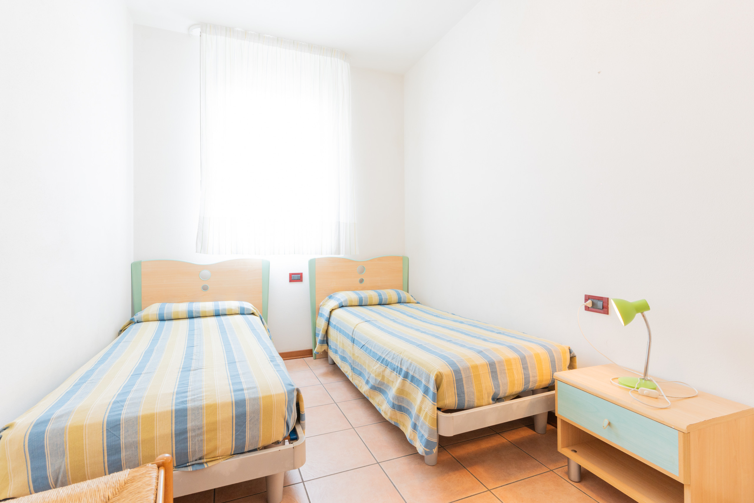 - Ein Zweibettzimmer mit zwei Einzelbetten,