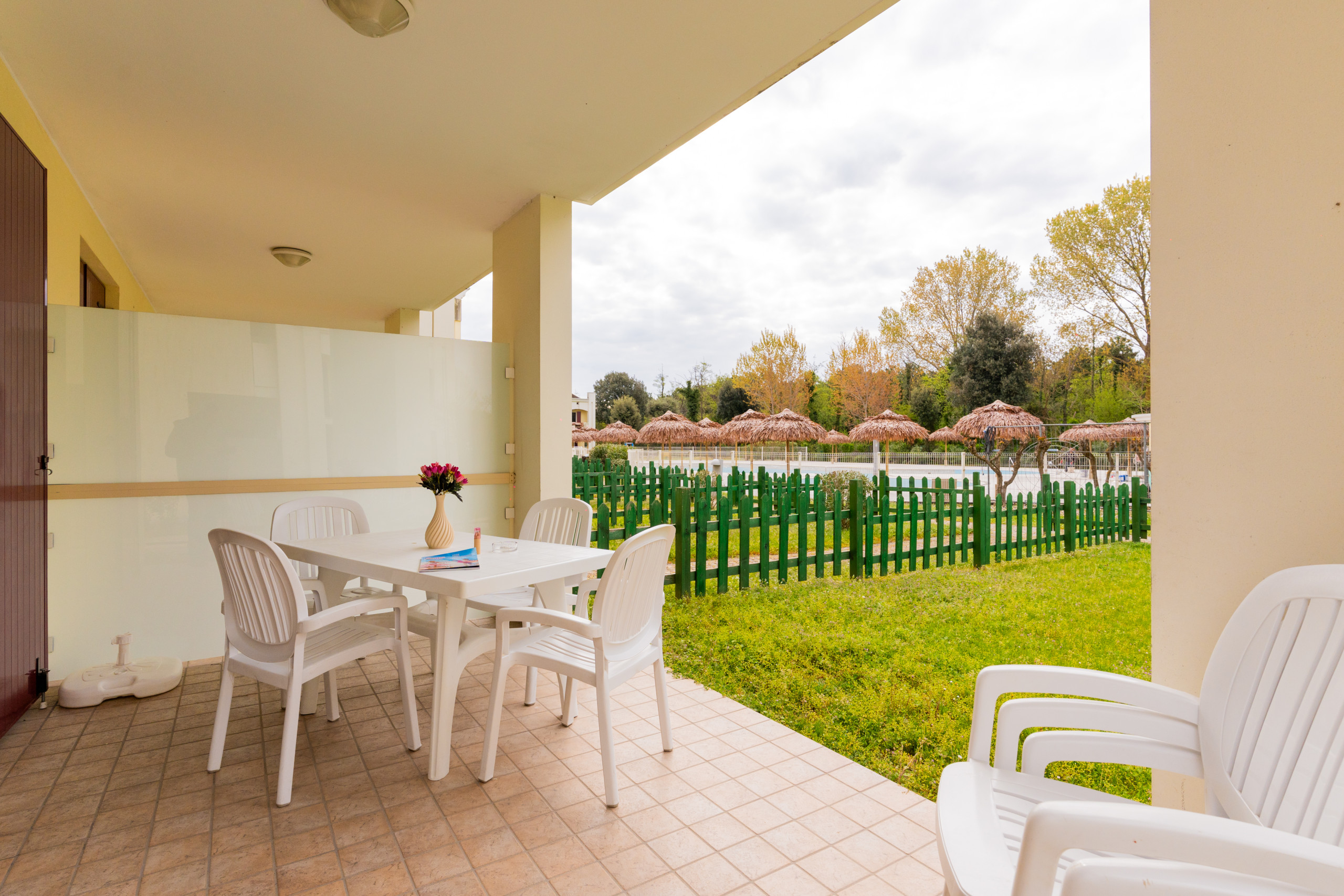 Das Herz des Dorfes ist der zentrale Garten, wo Kinder sich mit speziellen Spielen vergnügen und Familien sich im geräumigen Schwimmbad mit kostenlosem WLAN entspannen können.