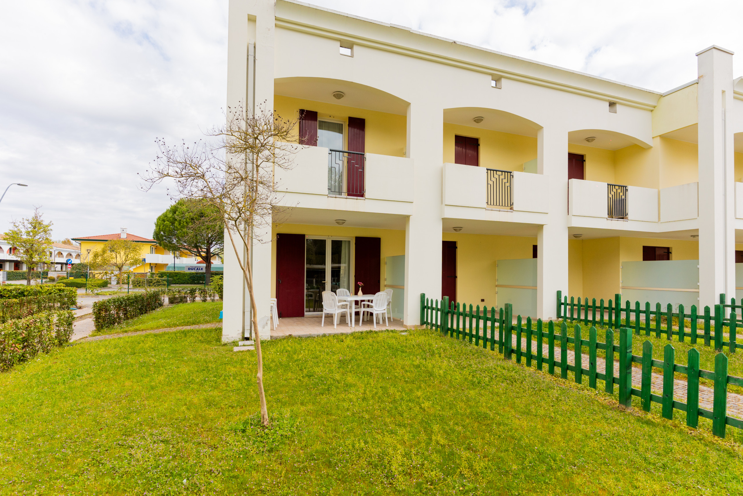Gelegen in Bibione Lido del Sole, besteht dieser ruhige Komplex aus 18 charmanten Villen, von denen jede vier Wohnungen im Erdgeschoss oder im ersten Stock umfasst, ideal für Familien und Paare, die Komfort und Entspannung suchen.