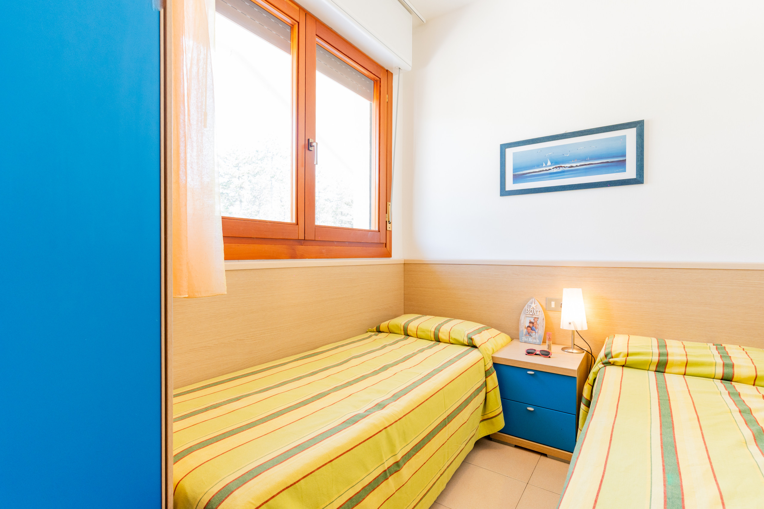 Die Dreizimmerwohnungen des Residence Il Campiello bieten helle und funktionale Räume, ideal für diejenigen, die während des Urlaubs mehr Platz und Komfort suchen. Sie befinden sich sowohl im ersten Obergeschoss mit unabhängigem Eingang über eine externe Treppe als auch in den oberen Stockwerken bis zum vierten und bieten immer einen angenehmen nach Süden ausgerichteten Balkon, der perfekt für Frühstücke im Freien oder zum Entspannen bei Sonnenuntergang ist.