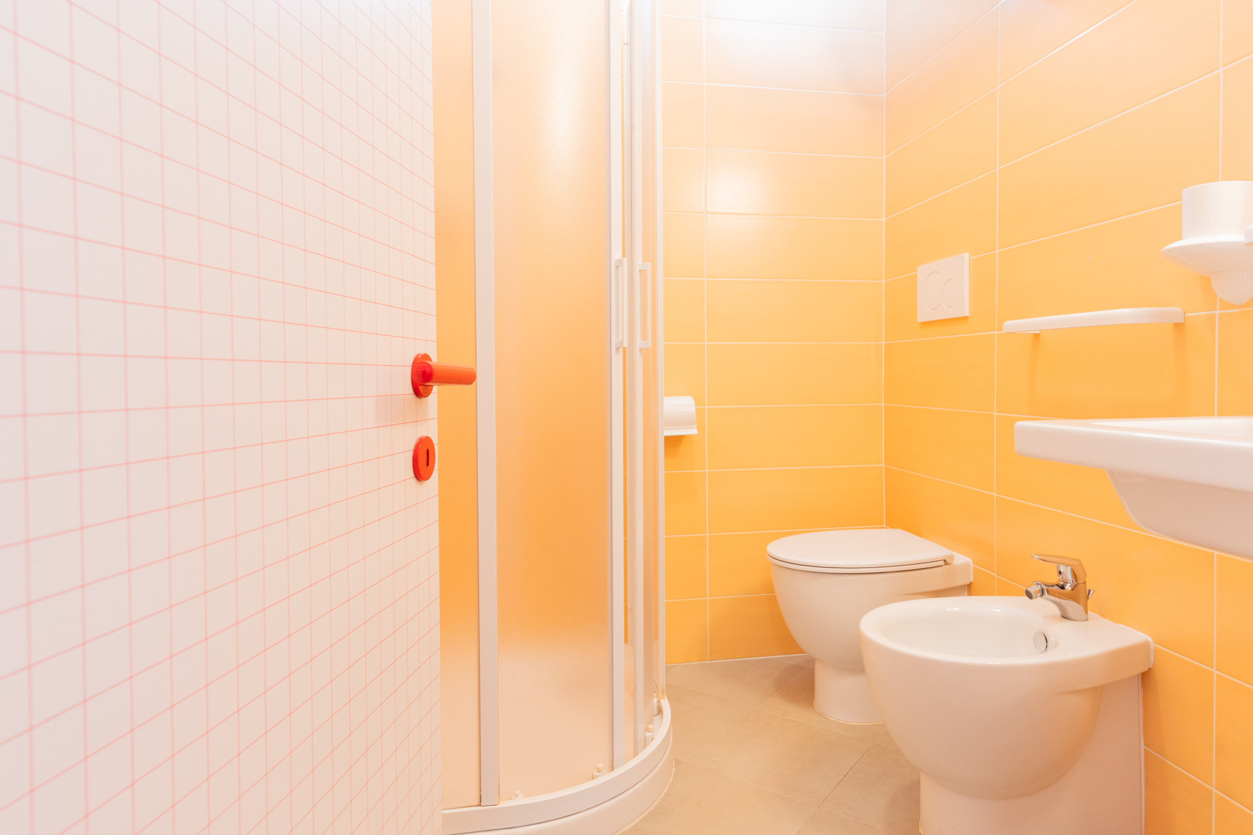 - einem Badezimmer mit Duschkabine.