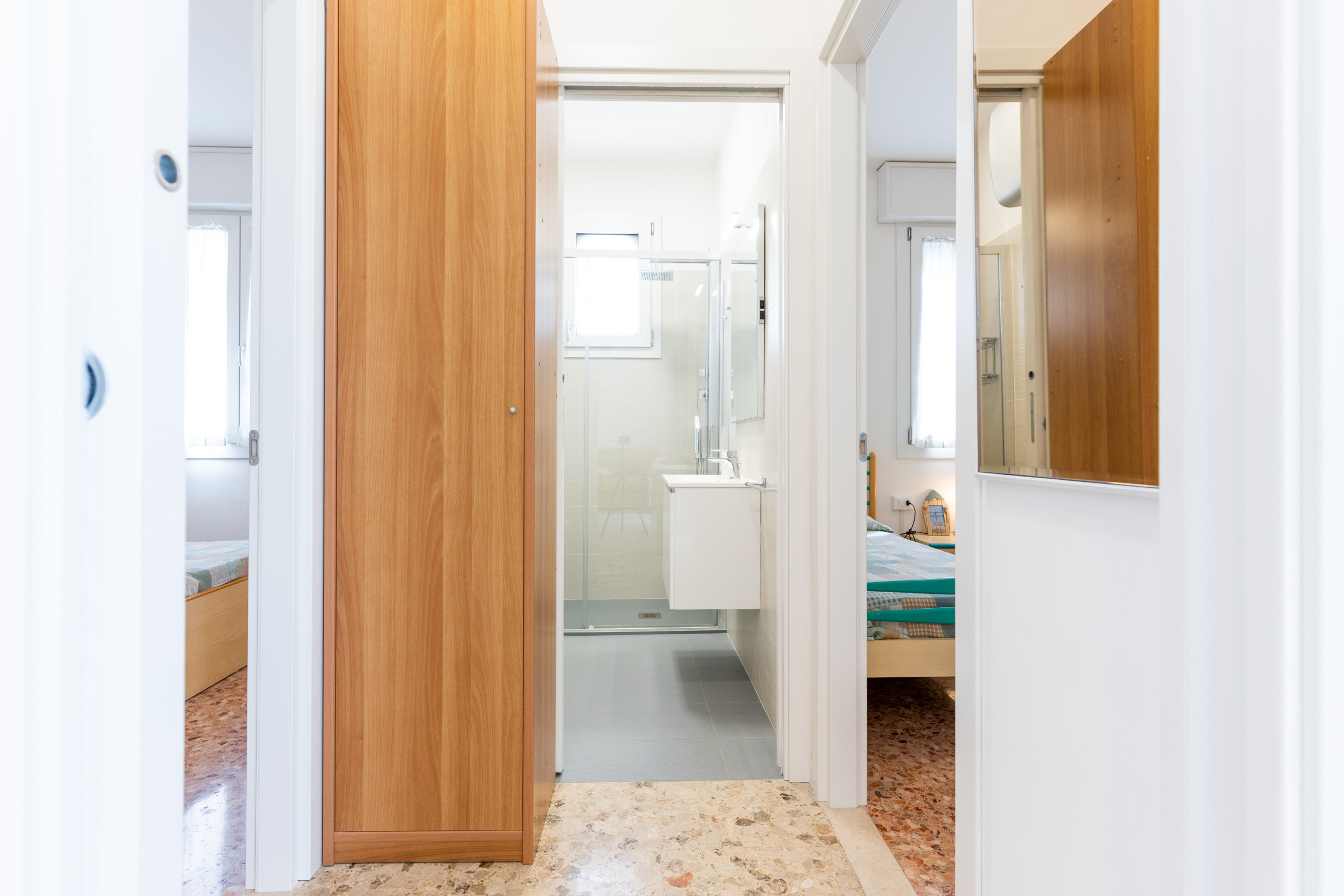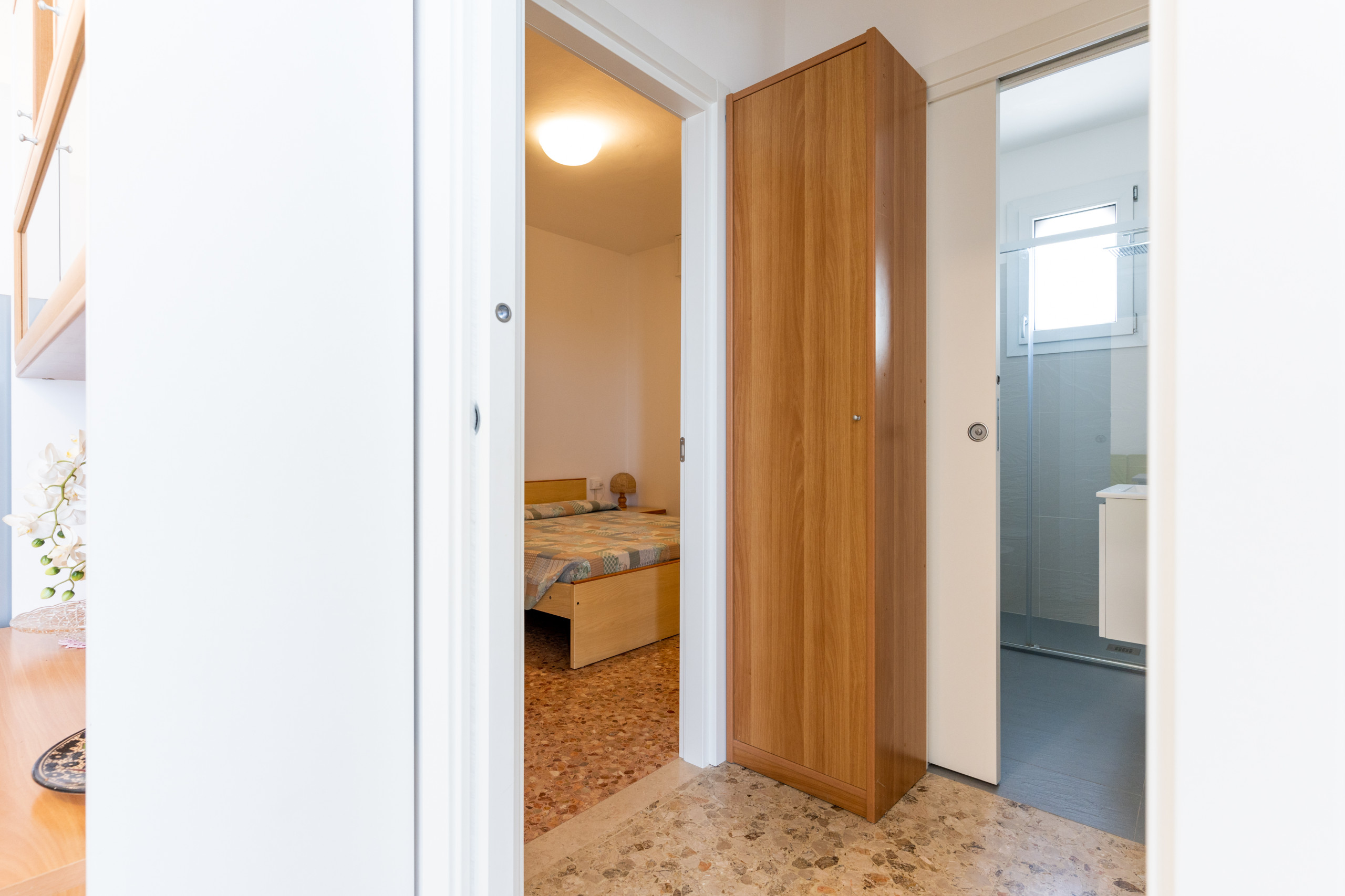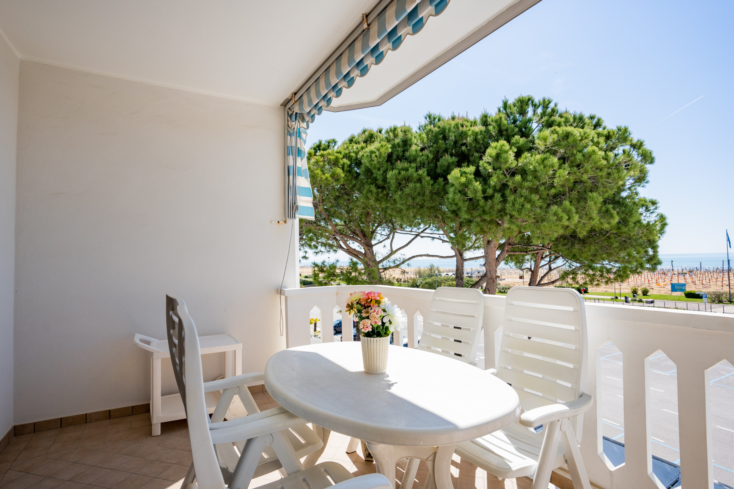 Die renovierten Dreizimmerwohnungen, die sich zwischen dem zweiten und dritten Stock befinden, bieten geräumige Terrassen oder Balkone mit Ausrichtung nach Süden oder Nordwesten, ideal zum Genießen eines Kaffees in der Sonne oder eines Abendessens im Freien mit Blick auf verschiedene Ausblicke von Bibione.