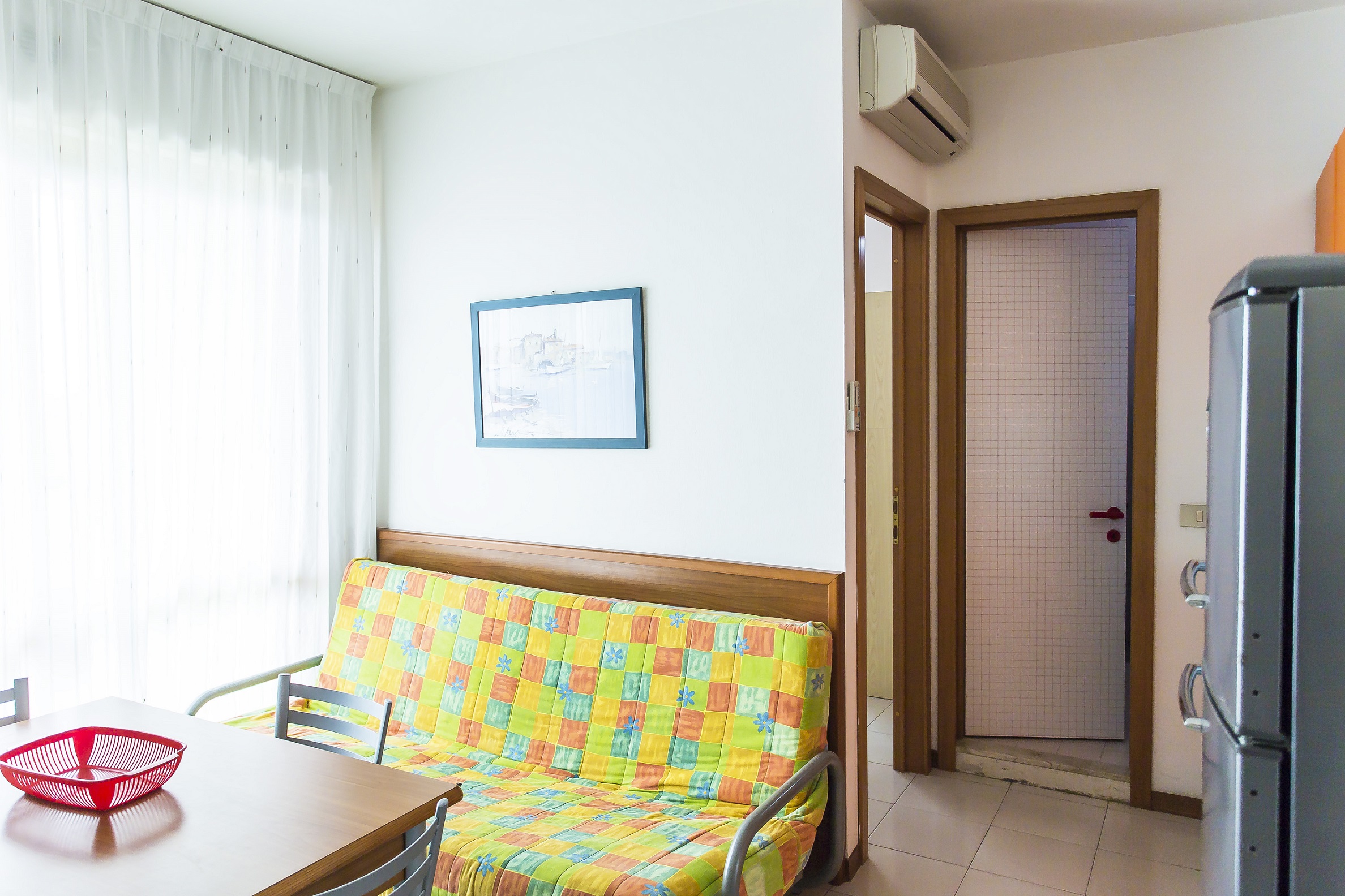 Zweizimmerwohnung mit Balkon bestehend aus Wohnraum mit Kochnische und Doppelschlafcouch, Schlafzimmer mit Doppelbett und Badezimmer. Castello ist im Gruenen von Bibione Lido del Sole gelegen, mit Schwimmbad fuer Erwachsene und Kinder, es verfuegt ueber renovierte Wohnungen, ab 5. Stock mit Panoramablick, herrliche Einrichtung, alle Wohnungen haben einen nummerierten Parkplatz, Klimaanalage und Sat-Tv. Strandservice im Preis imbegriffen.