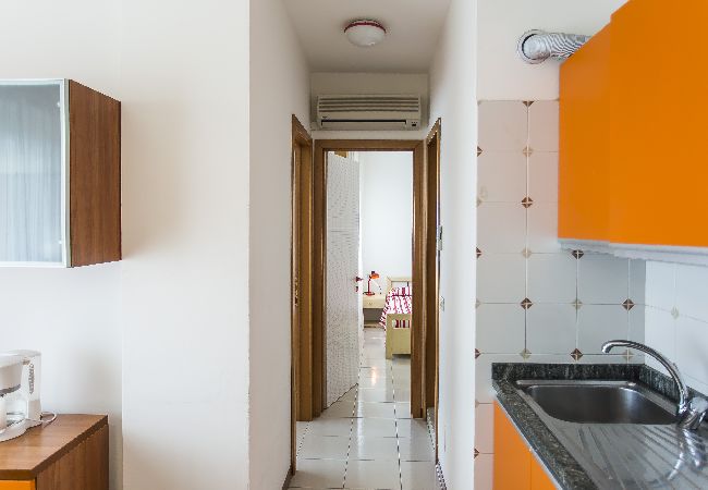 Die Zweizimmerwohnungen, die sich im zweiten Stock befinden, verfügen über Balkone mit verschiedenen Ausrichtungen und Aussichten, die ideal sind, um die Meeresbrise und Momente der Entspannung im Freien zu genießen. Jede Unterkunft verfügt über ein Schlafzimmer mit Doppelbett und zusätzlichem Einzelbett, ein Wohnzimmer mit ausgestatteter Küchenzeile und Sofa (kein Bett) sowie ein Badezimmer mit Duschkabine.