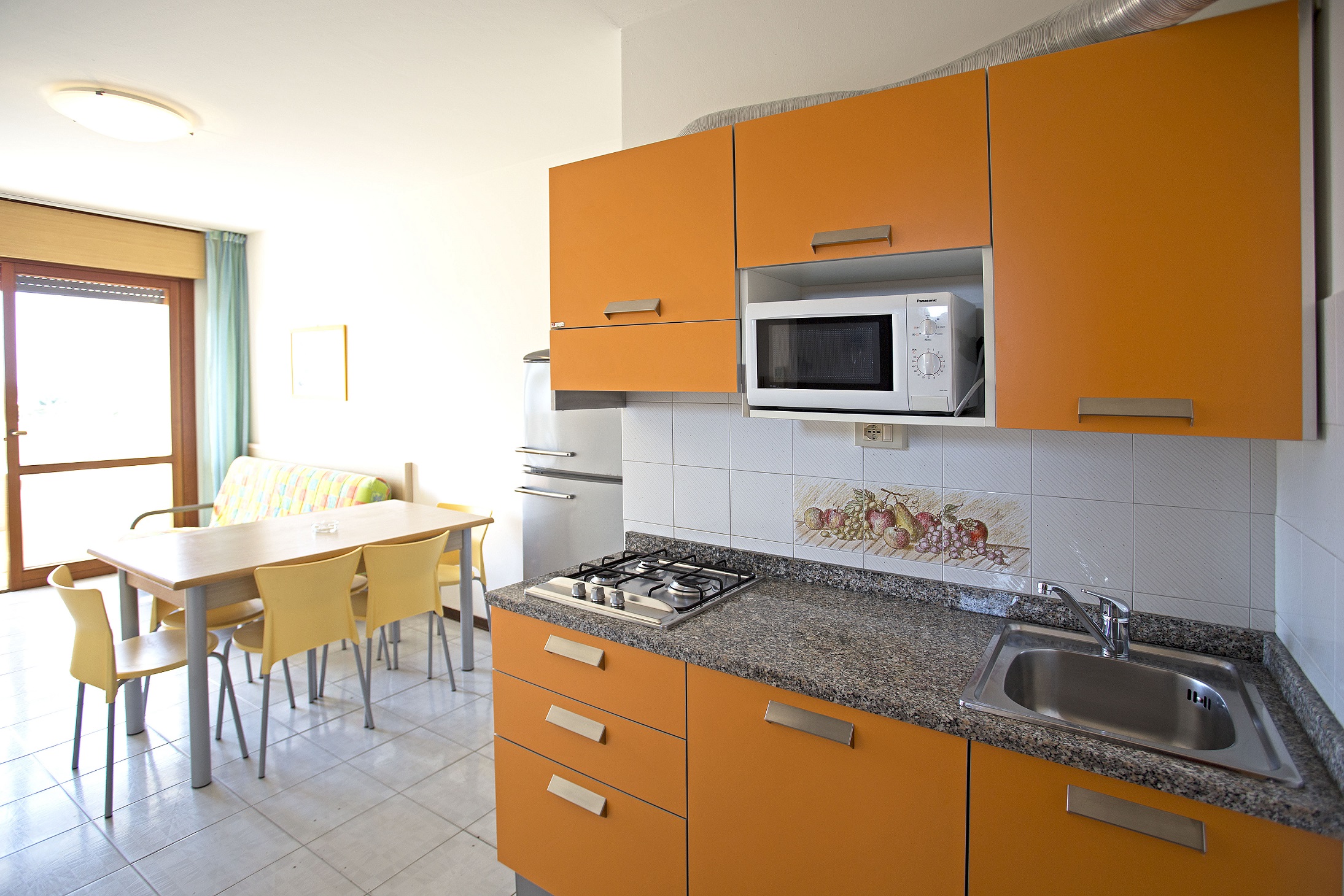 Dreiraumwohnung mit Balkon bestehend aus Wohnraum mit Kochnische und Doppelschlafcouch, Schlafzimmer mit Doppelbett, Schlafzimmer mit Stockbett und Bad. Rialto ist ein renoviertes Wohnhaus in Bibione Lido del Sole mit 24 Wohnungen, geraeumigem Innenhof im Pinienwald und in einer ruhigen Lage gelegen und verfuegt ueber ein Schwimmbad fuer Erwachsene und eines fuer Kinder. Alle Wohnungen verfuegen ueber Klimaanlage, Sat-Tv und Mikrowelle, Gartentisch, Stuehle, Sonnenschirm und nummerierten Parkplatz. Strandservice im Preis imbegriffen.