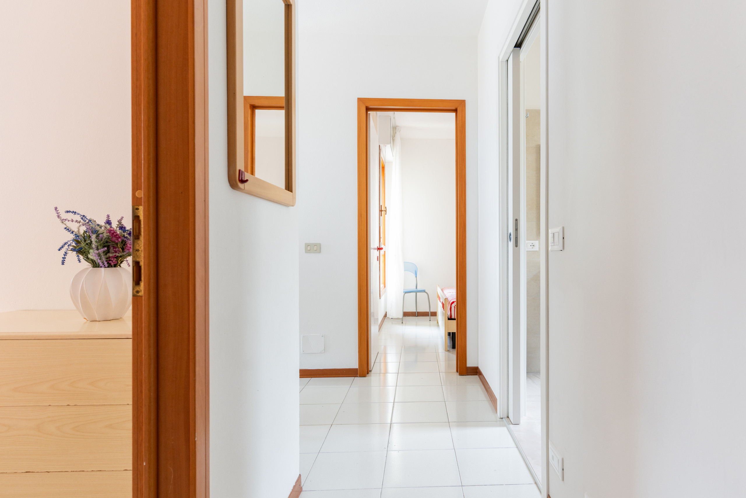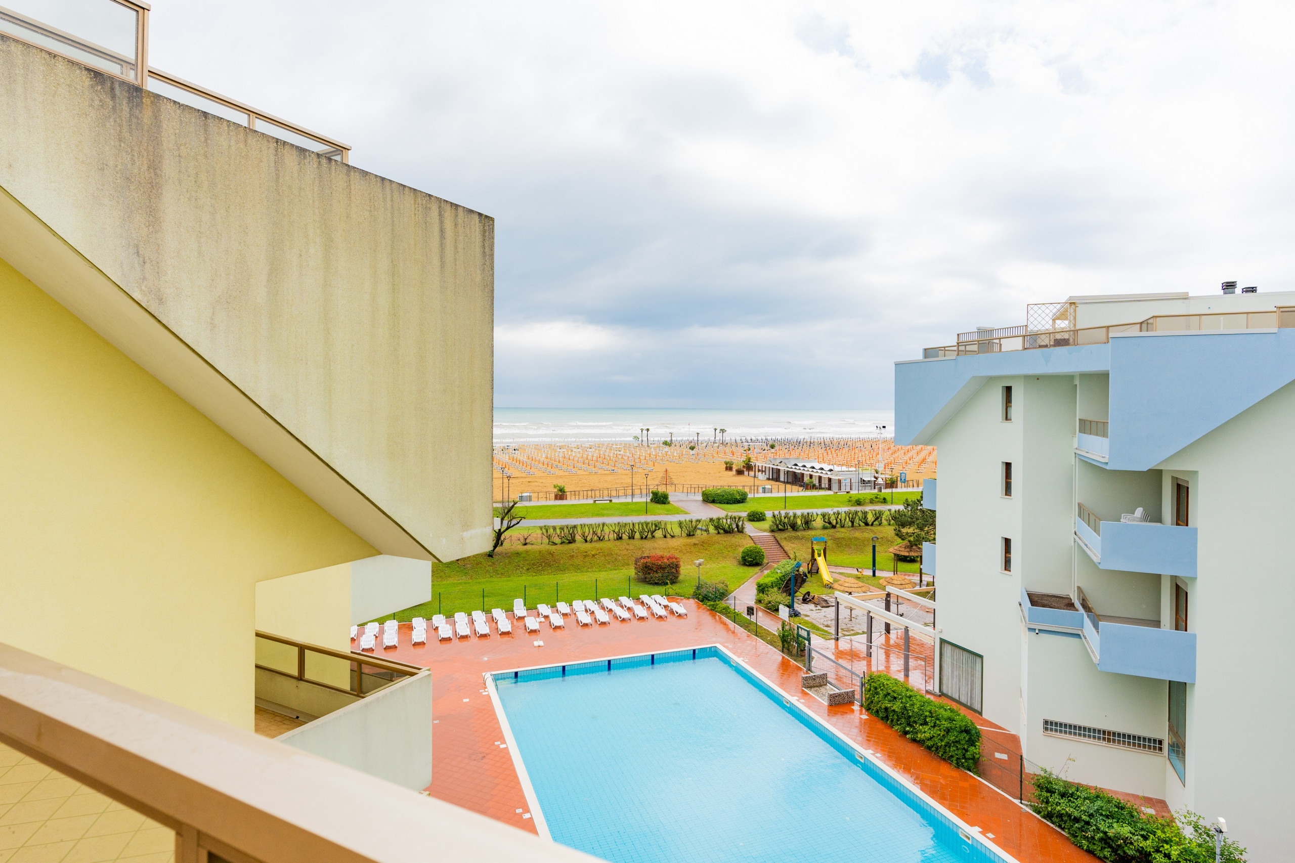 Die renovierten Dreizimmerwohnungen, die sich zwischen dem zweiten und dritten Stock befinden, bieten geräumige Terrassen oder Balkone mit Ausrichtung nach Süden oder Nordwesten, ideal zum Genießen eines Kaffees in der Sonne oder eines Abendessens im Freien mit Blick auf verschiedene Ausblicke von Bibione.