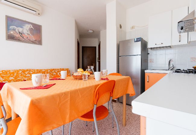 Die privilegierte Lage im Herzen von Bibione Lido del Sole ermöglicht es Ihnen, in wenigen Minuten den Strand zu erreichen, der mit Sonnenschirmen und Liegestühlen ausgestattet ist und deren Preis bereits inklusive ist, während Sie in der Nähe Geschäfte, Bars und Restaurants finden, um jeden Moment des Tages optimal zu genießen.